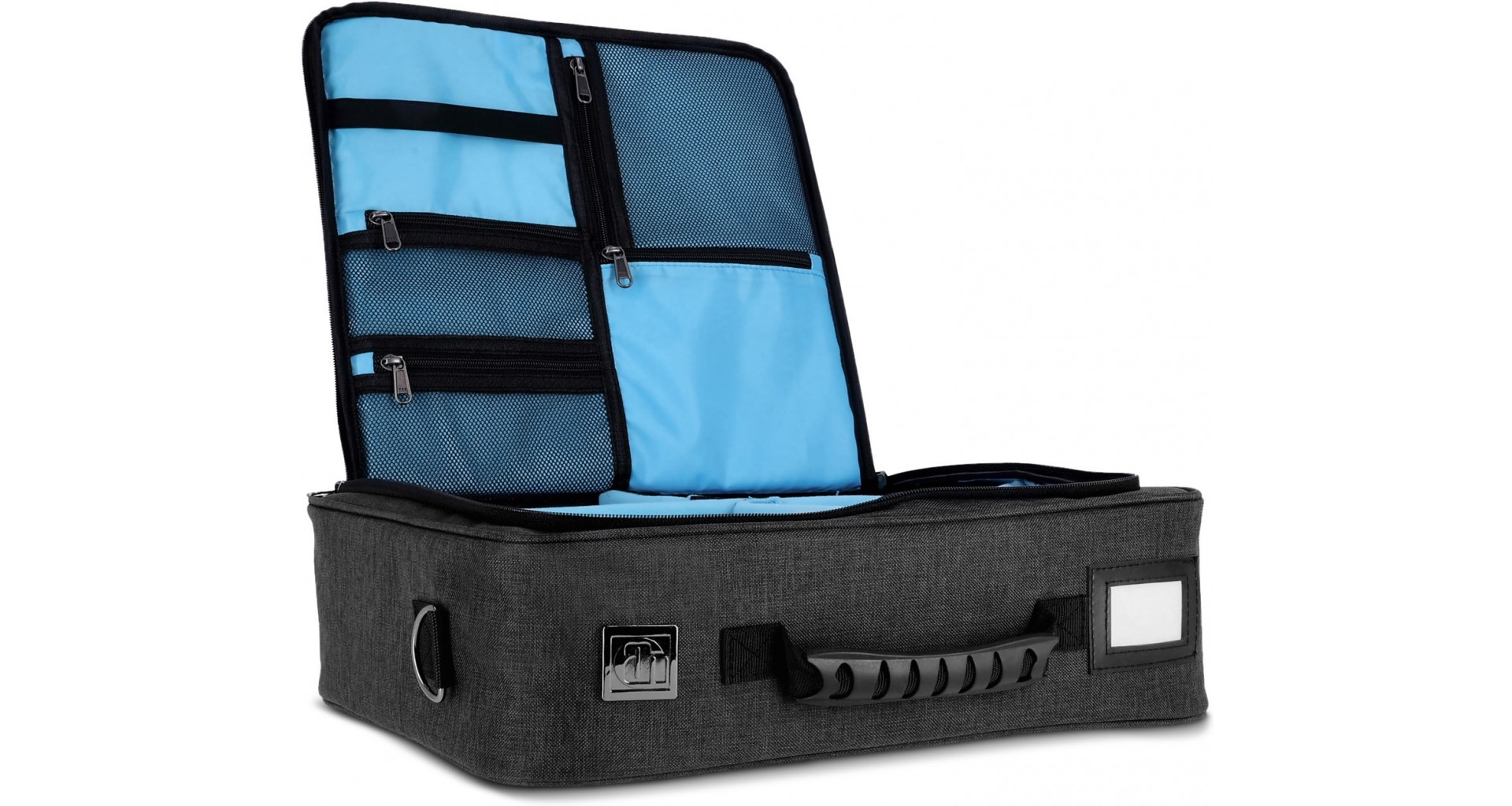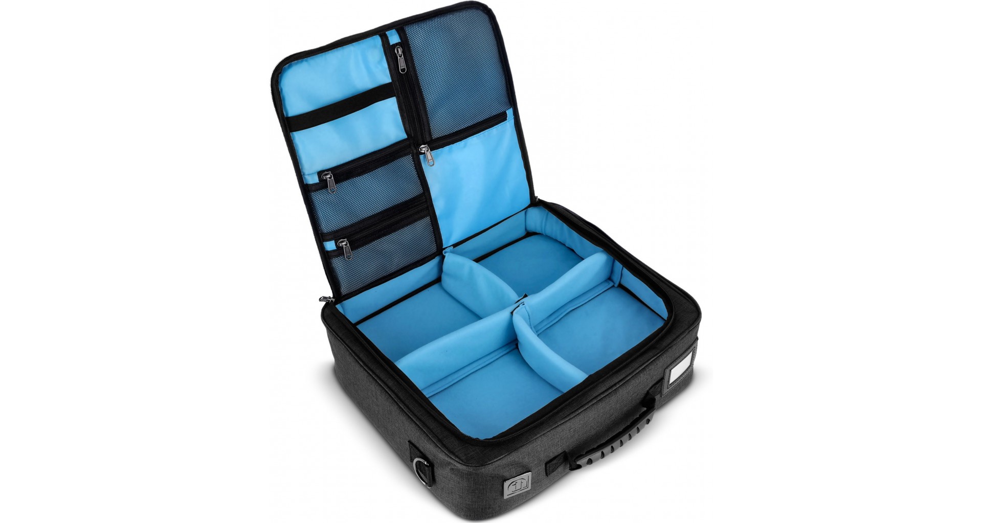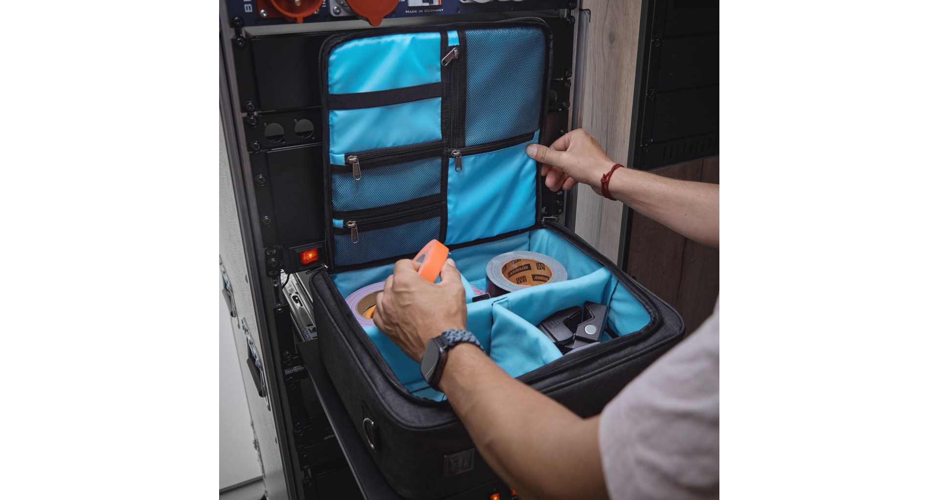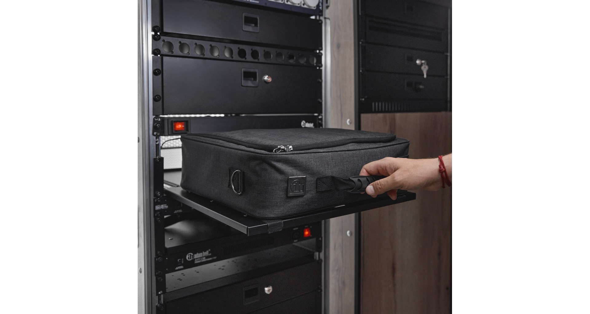 Geanta organizator captusita pentru rack 19" (3U), realizata din nylon 1680D, cu grosime de captuseala de 12 mm. Dispune de doua compartimente si separatoare interioare reglabile (3 bucati) fixate cu hook-and-loop, astfel incat spatiul poate fi configurat dupa necesitati. Compartiment superior cu fermoar, trei buzunare din plasa si un buzunar suplimentar cu fermoar. Prindere sigura in rack prin banda loop pe baza, cu hook inclus. Echipata cu maner ergonomic si curea de umar detasabila. Dimensiuni: 400 x 120 x 360 mm, greutate 753 g.