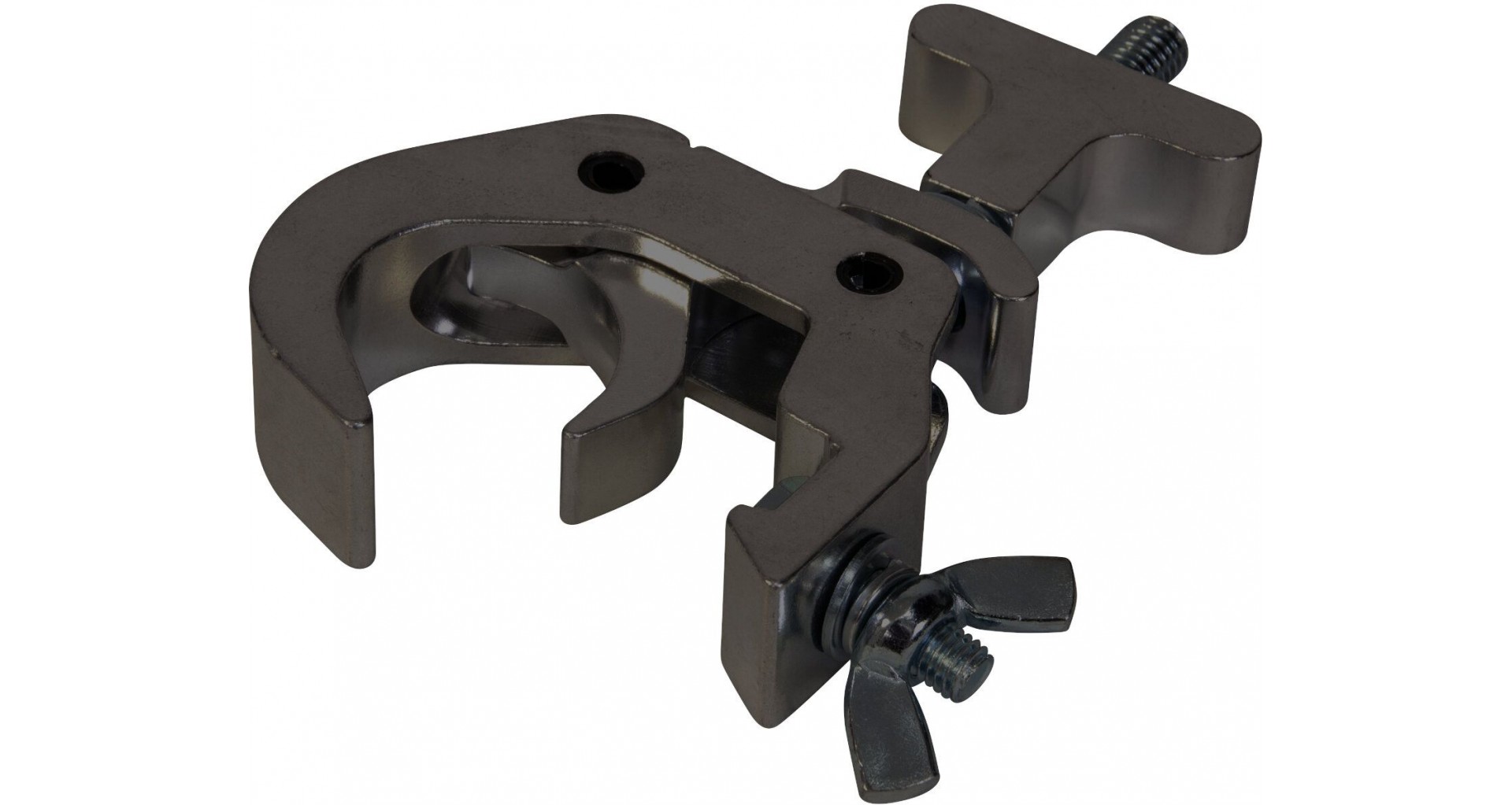 Clema rezistenta din aluminiu pentru montarea rapida a efectelor de lumina pe un sistem de schela. Clema este compatibila cu tuburile de schela ce au un diametru cuprins intre 38 si 52 mm si poate sustine o sarcina maxima de 150 kg. Finisaj negru.