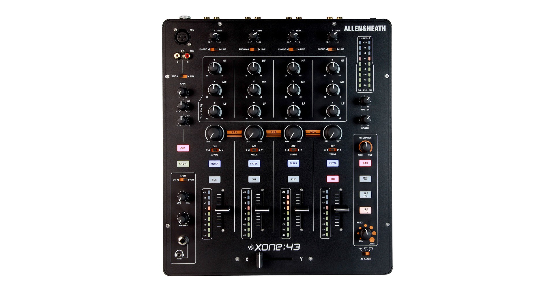 Xone:43 este un mixer analog de DJ cu 4 canale.