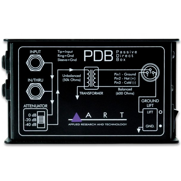 ART PDB este un DI box pasiv, cu atenuare selectabia si ground lift integrat.
