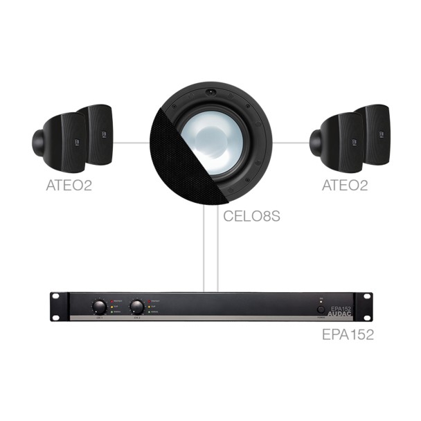 SONA82.4S/B este un sistem audio de interior format din 4 boxe ultra-compacte ATEO2 cu driver de 2 inch si sunet foarte plin, subwoofer CELO8S de 8 inch ce reproduce frecventele joase in cel mai natural mod, cu crossover stereo incorporat si amplificator stereo EPA152 cu eficienta energetica clasa D. Acest sistem poate acoperi pana la 100 m2 cu muzica ambientala puternica si clara. Culoare: Negru.