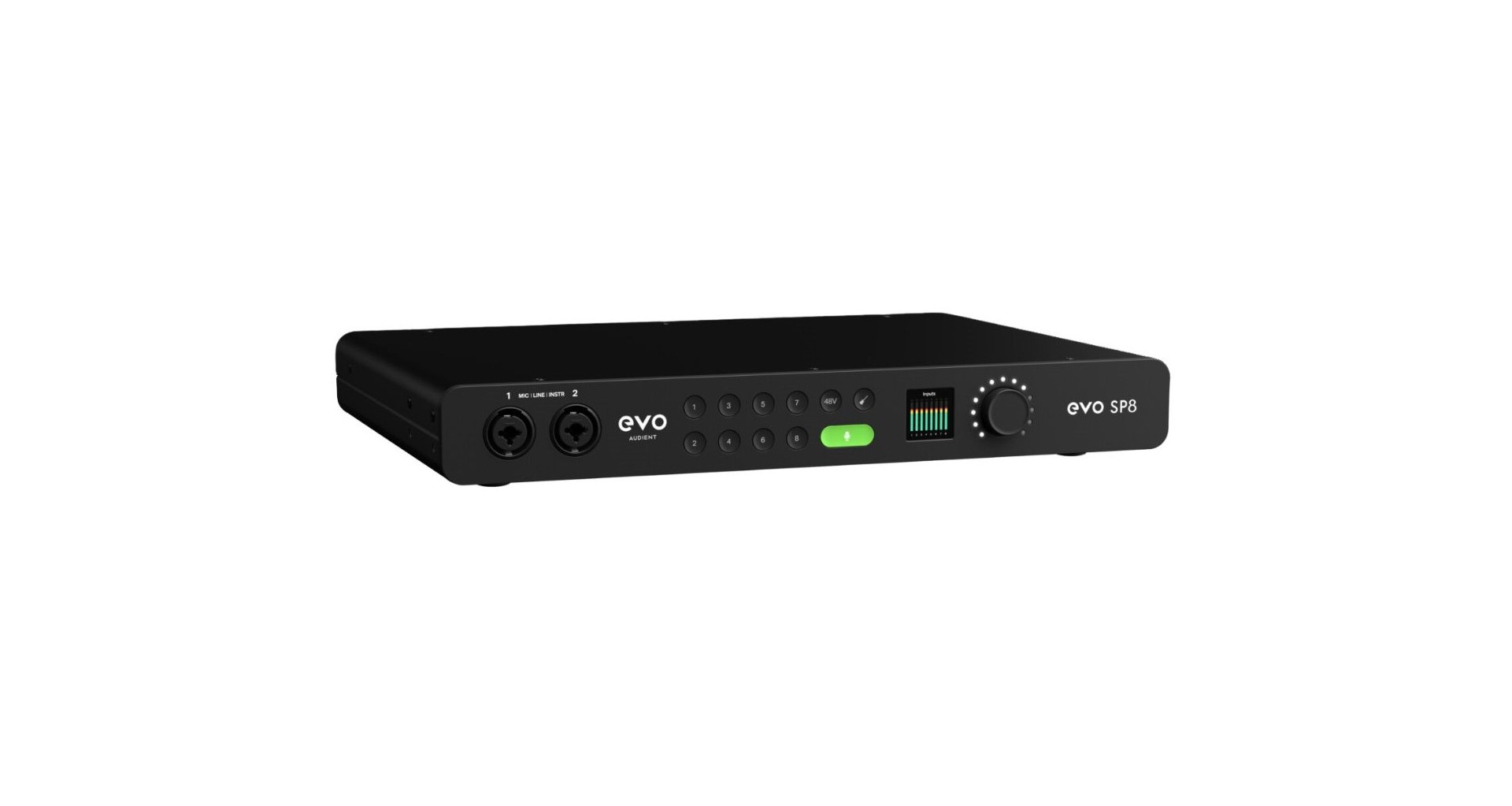 Audient EVO SP8 este preamplificator cu 8 intrari de microfon, 2 intrari JFET pentru instrumente, 8 iesiri de linie, 2 intrari si 2 iesiri ADAT.
