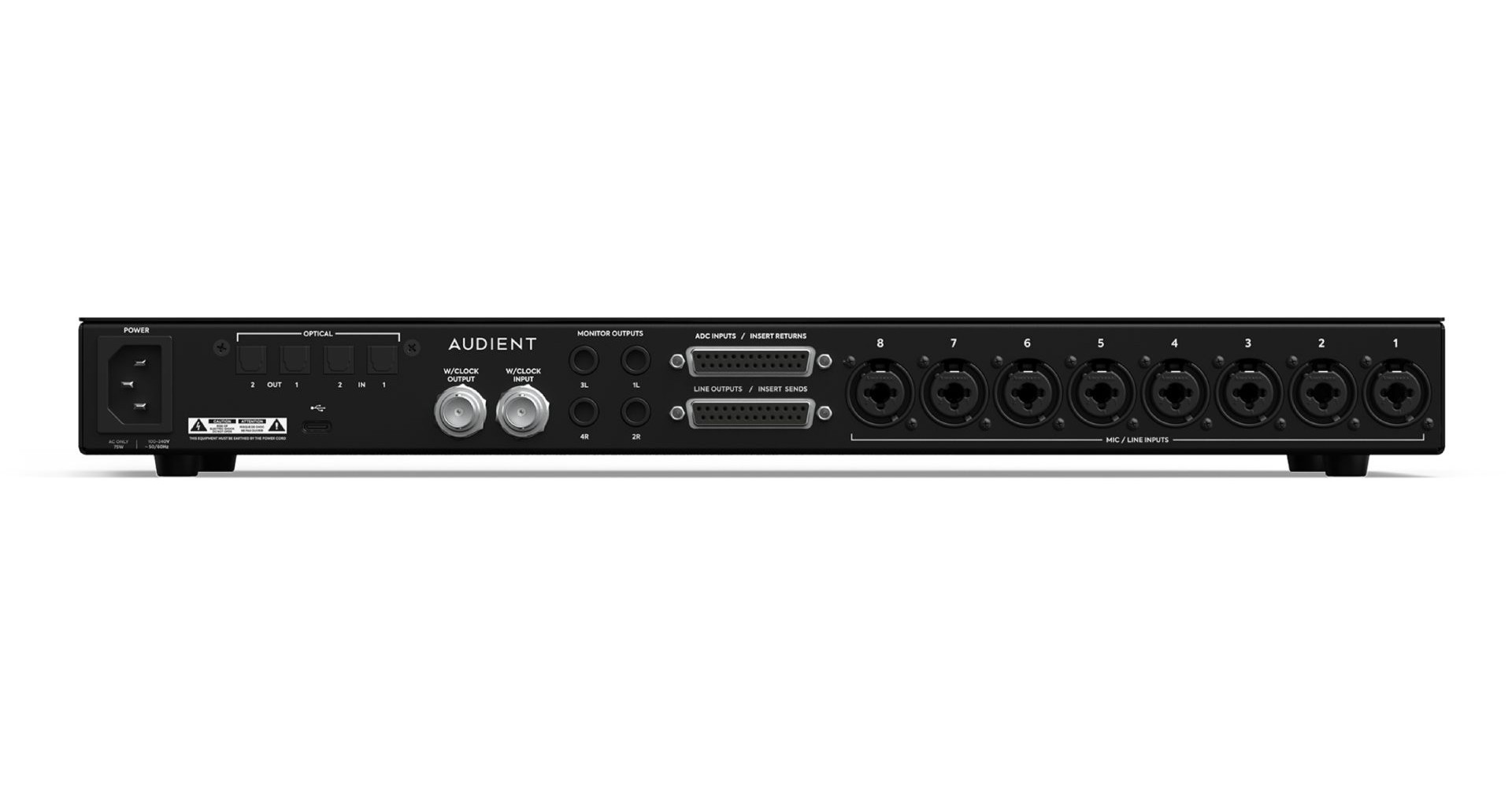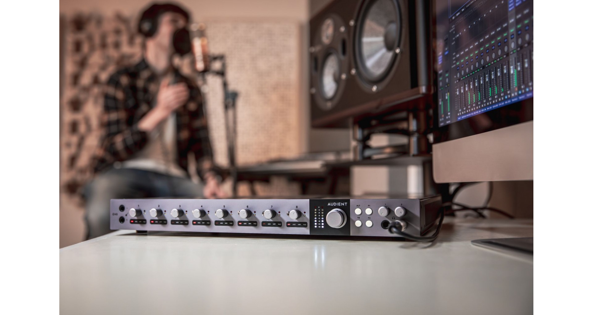 Dispune de 8 preamplificatoare de microfon Audient Console, convertoare ESS pe 32 bit si tehnologie Switchable Analogue Insert pentru integrarea echipamentelor externe.