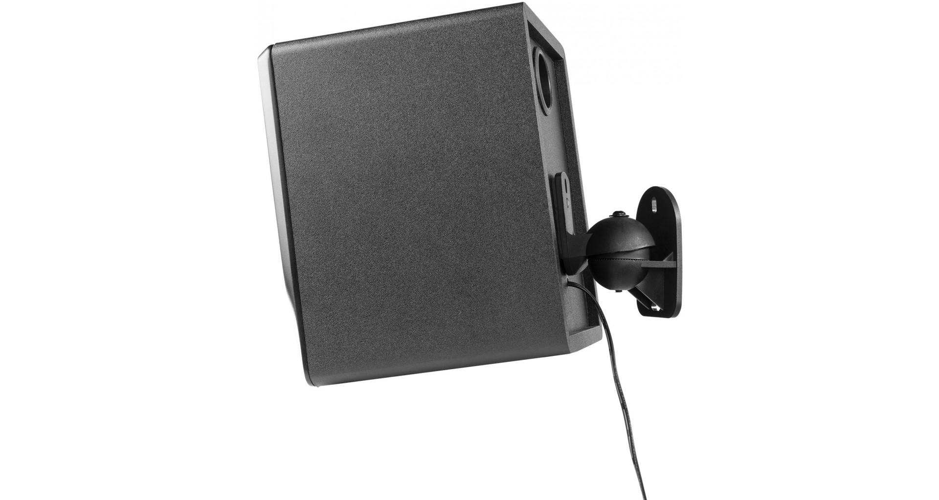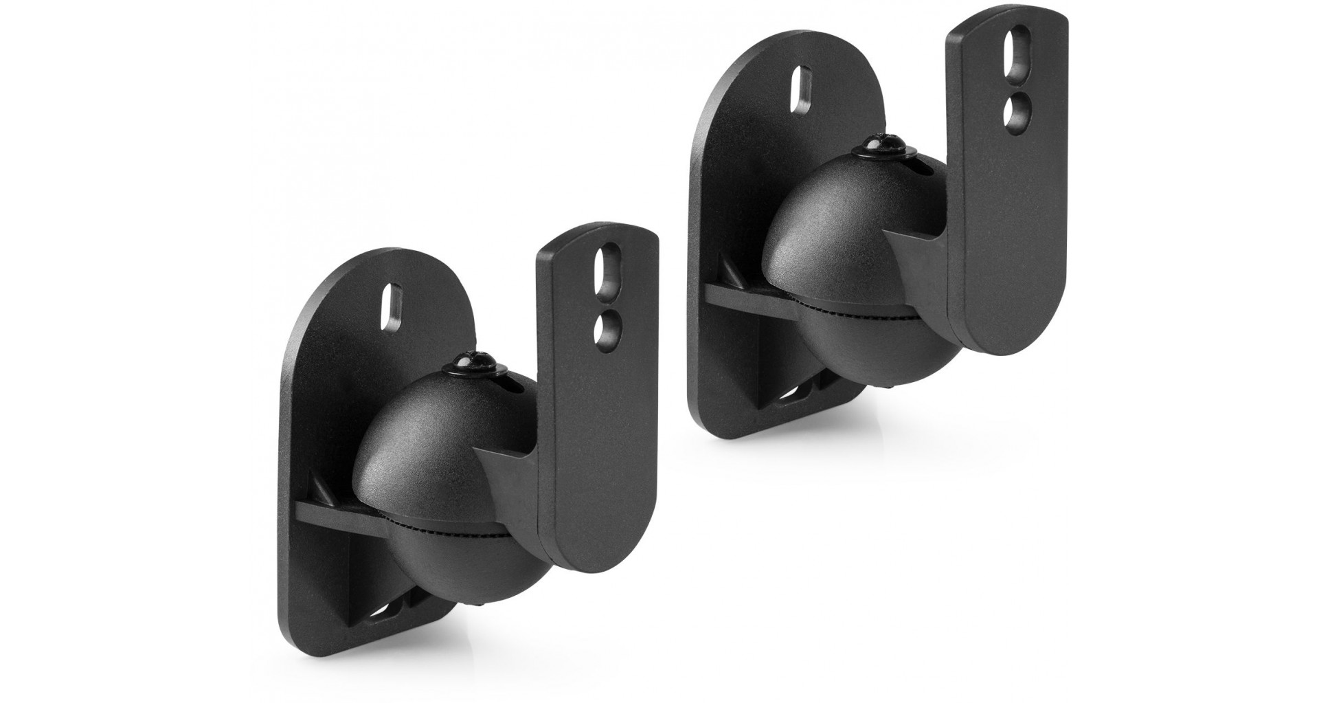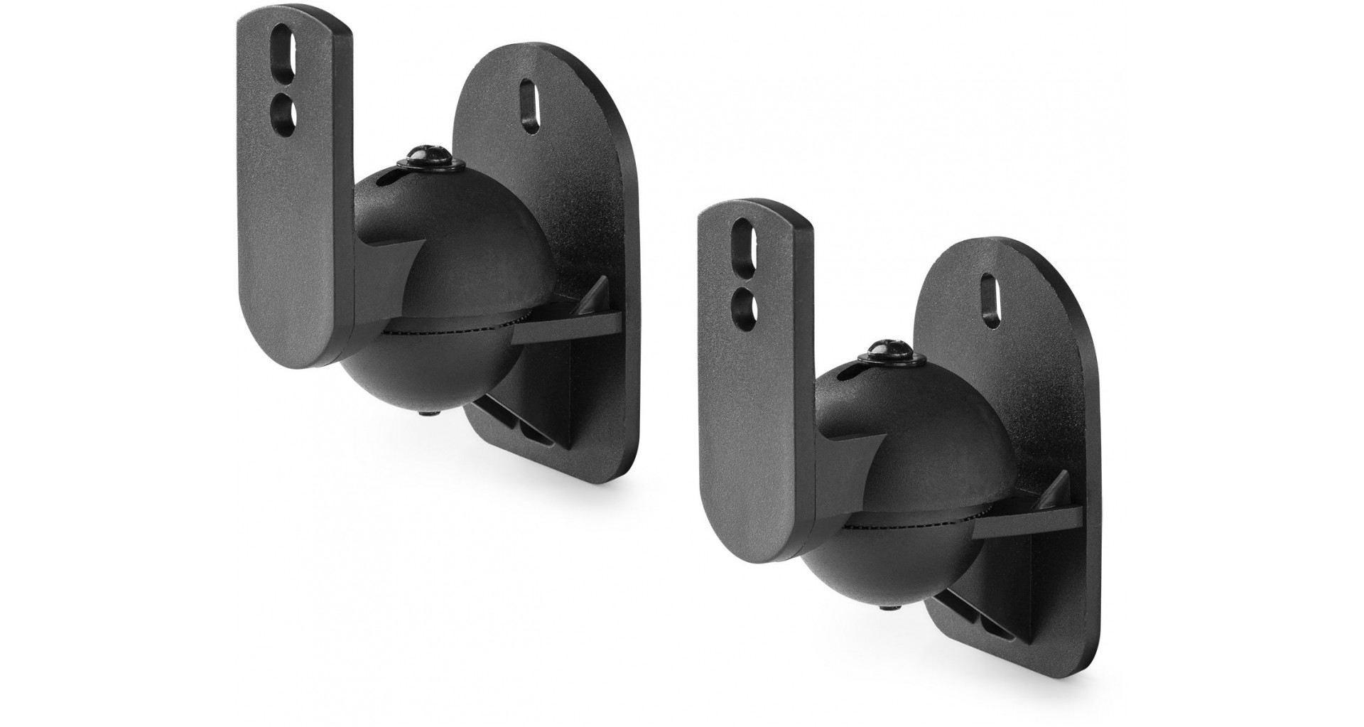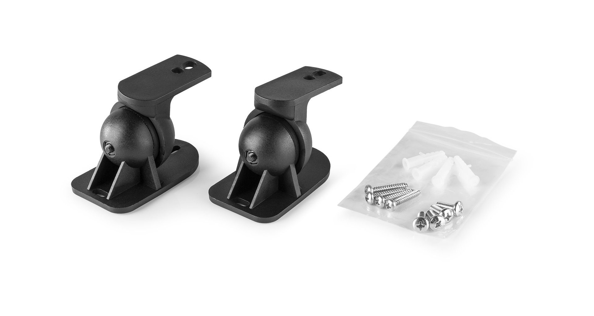 Setul de stative de boxa pentru perete Audizio HTS15 este excelent pentru montajul boxelor satelit cu o greutate de pana la 3.5 kg. Stativele sunt usor de instalat si pot fi inclinate vertical la 20 grade si orizontal la 70 grade. Dupa reglarea orientarii, aceasta poate fi blocata prin strangerea surubului din partea superioara a stativului. Stativele includ materialele necesare pentru montaj si pozitioneaza boxele la o distanta de 60 mm de perete.