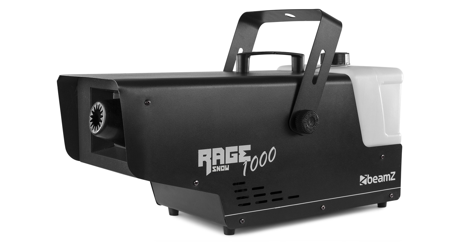 Rage1000SNOW este un efect de zapada high-output compact, construit in in incinta metalica. Aceasta masina de zapada creaza un efect realistic de zapada cazatoare cu un output impresionant. Este usor de transportat, datorita greutatii scazute si designului compact. Este dotat cu o telecomanda LCD cu fir de 3m si o telecomanda wireless. Rezervor luminat pentru verificarea nivelului de lichid.