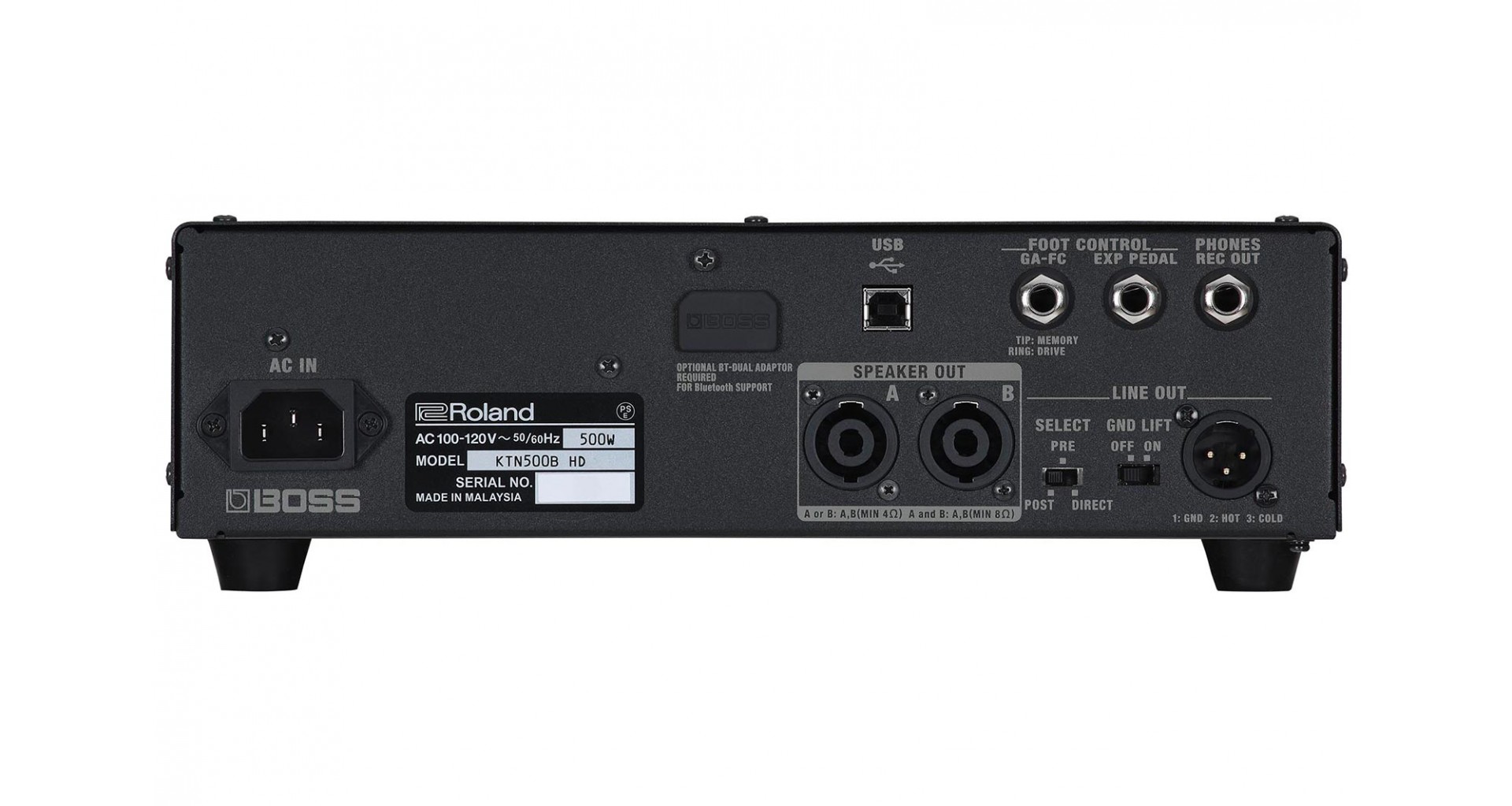 Boss Katana-500 Bass este un head de 500 W care poate oferi o multitudine de tonuri, fiind capabil sa livreze mai multe tipuri de drive si compresie, doua setari de "Feel" ale amplificatorului si diverse functii de conturare a sunetului. Acesta dispune de conexiune USB care permite descarcarea de preset-uri si inregistrarea sau redarea de semnal audio.