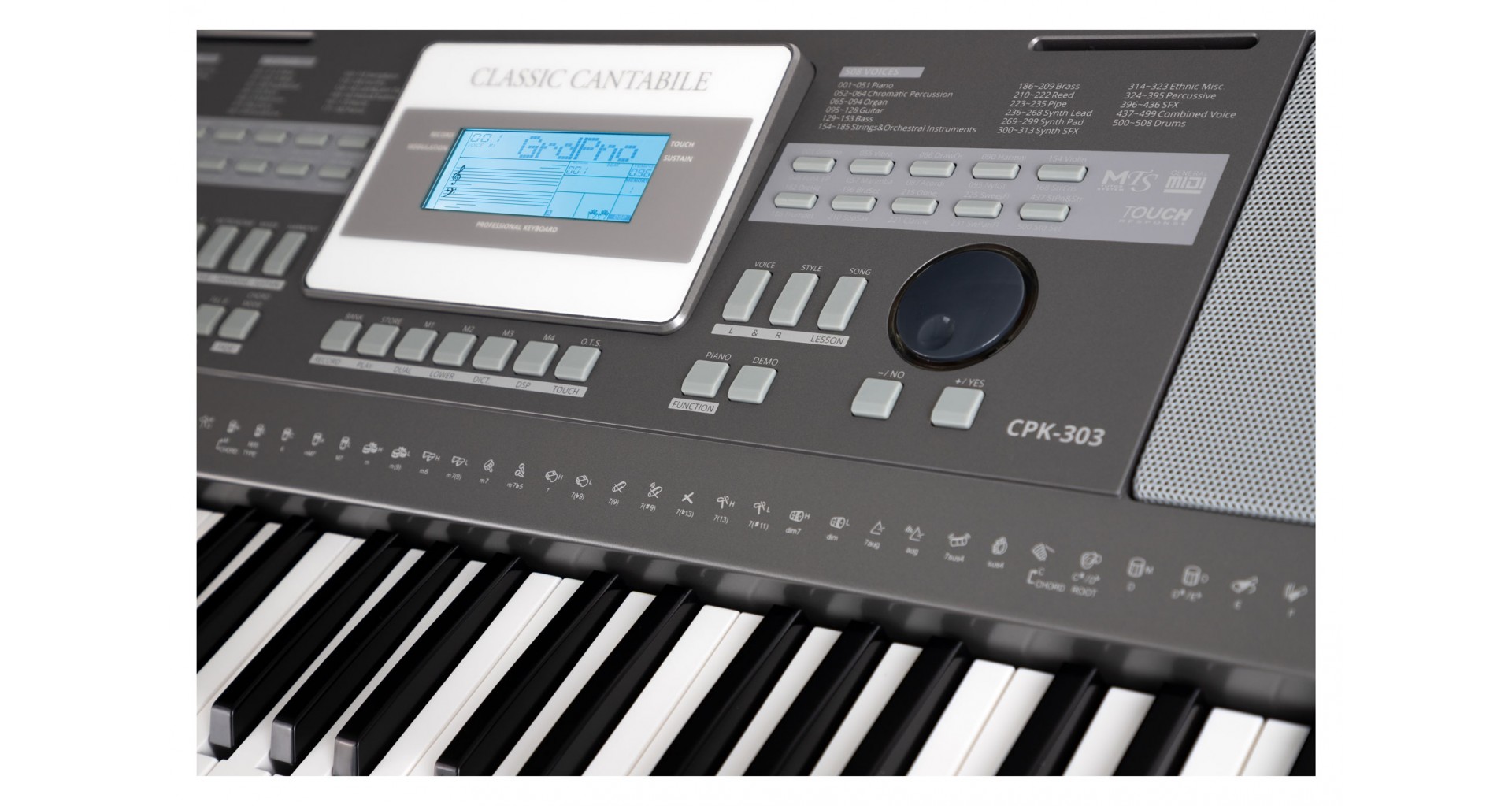 Sunetele cap de serie CPK-303 sunt aduse la viata de catre sistemul de difuzoare de 20w. Cele 508 tonuri pot fi imbunatatile chiar mai mult cu ajutorul efectelor DSP integrate.