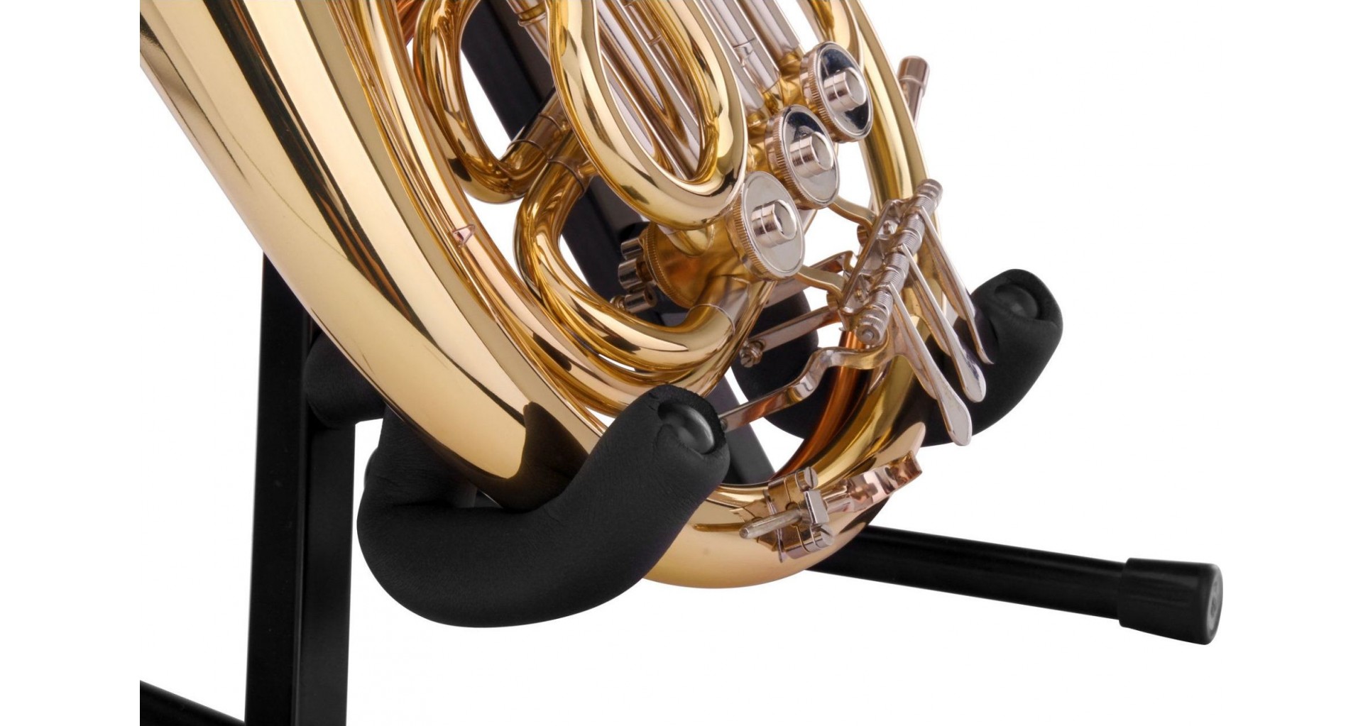 Stativul pentru corn francez FHS-2013 se remarca prin usurinta de utilizare si are un design compact, pliabil si stabil. Datorita greutatii si dimensiunilor reduse, stativul FHS-2013 poate fi transportat usor. Toate suprafetele de sustinere sunt captusite pentru a proteja finisajul instrumentului.