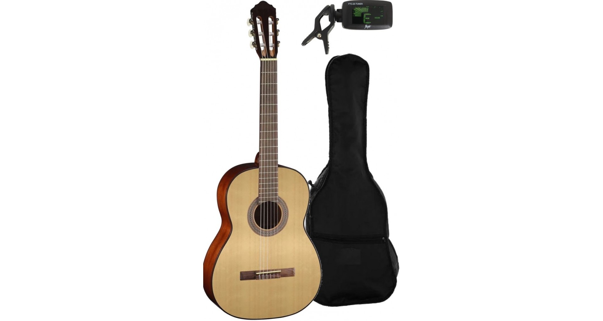 Pachet ce include o chitara clasica Cort AC100 OP, husa de chitara si tuner de chitara. Este perfect pentru chitaristi incepatori.