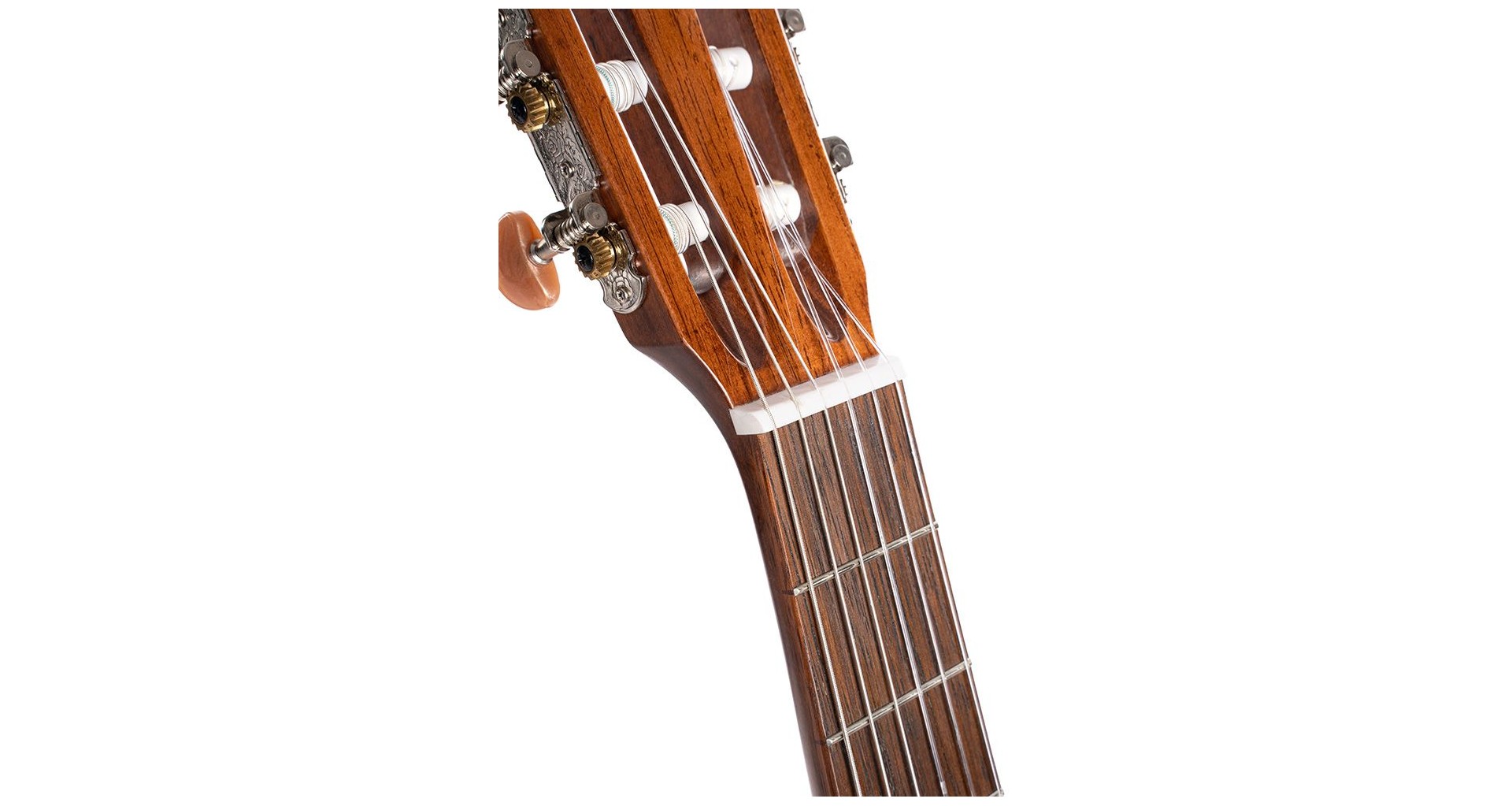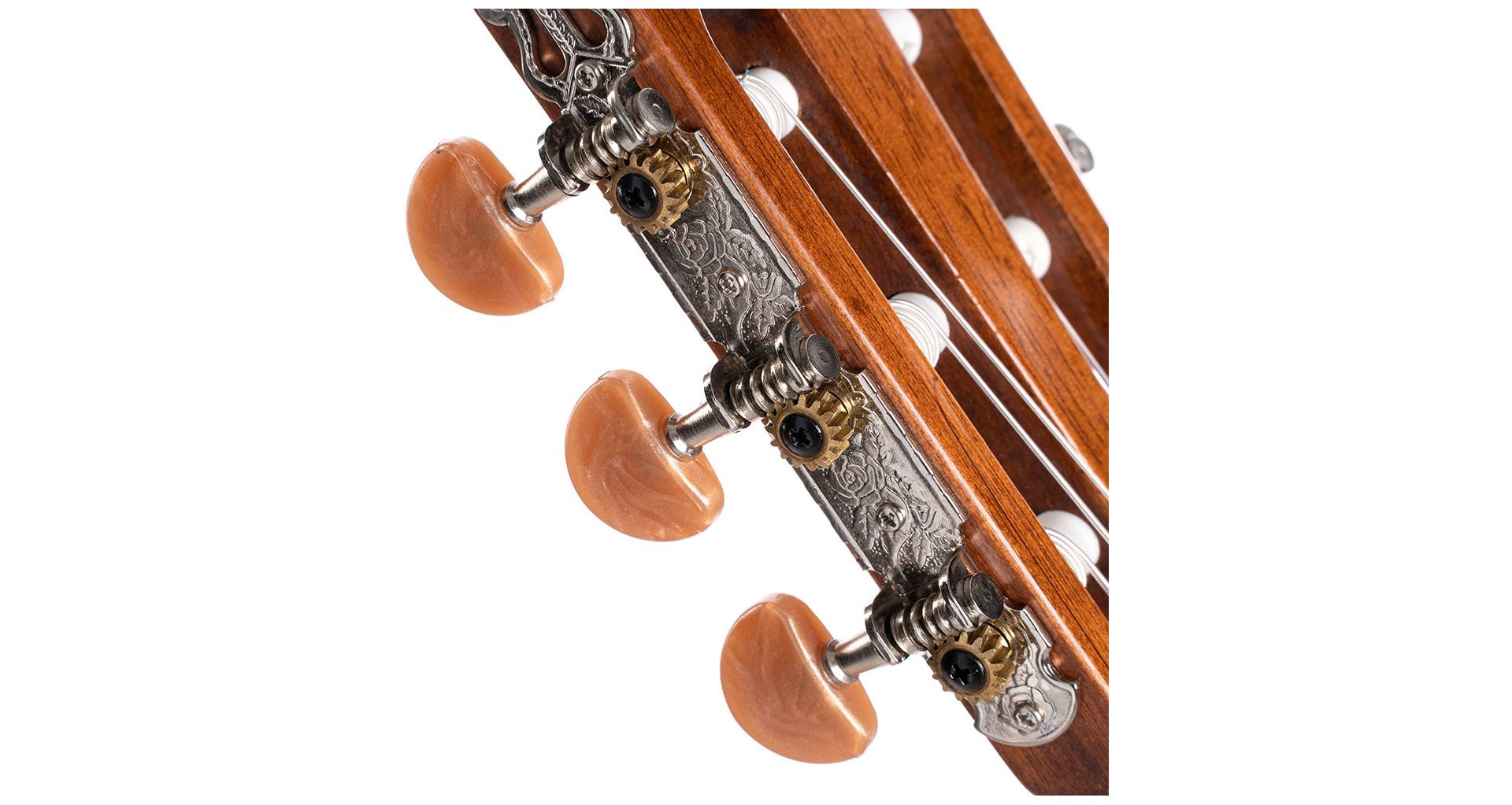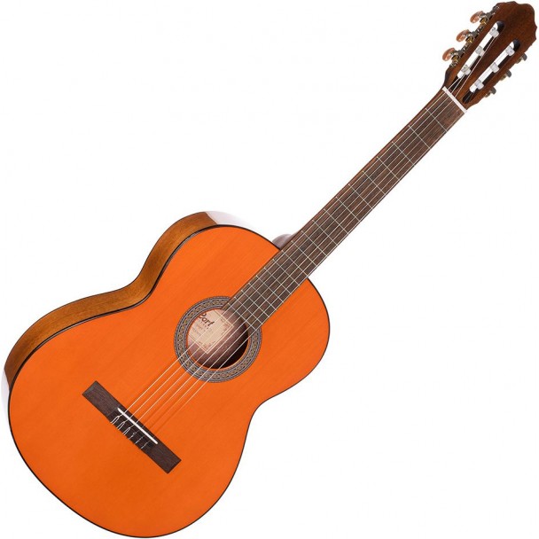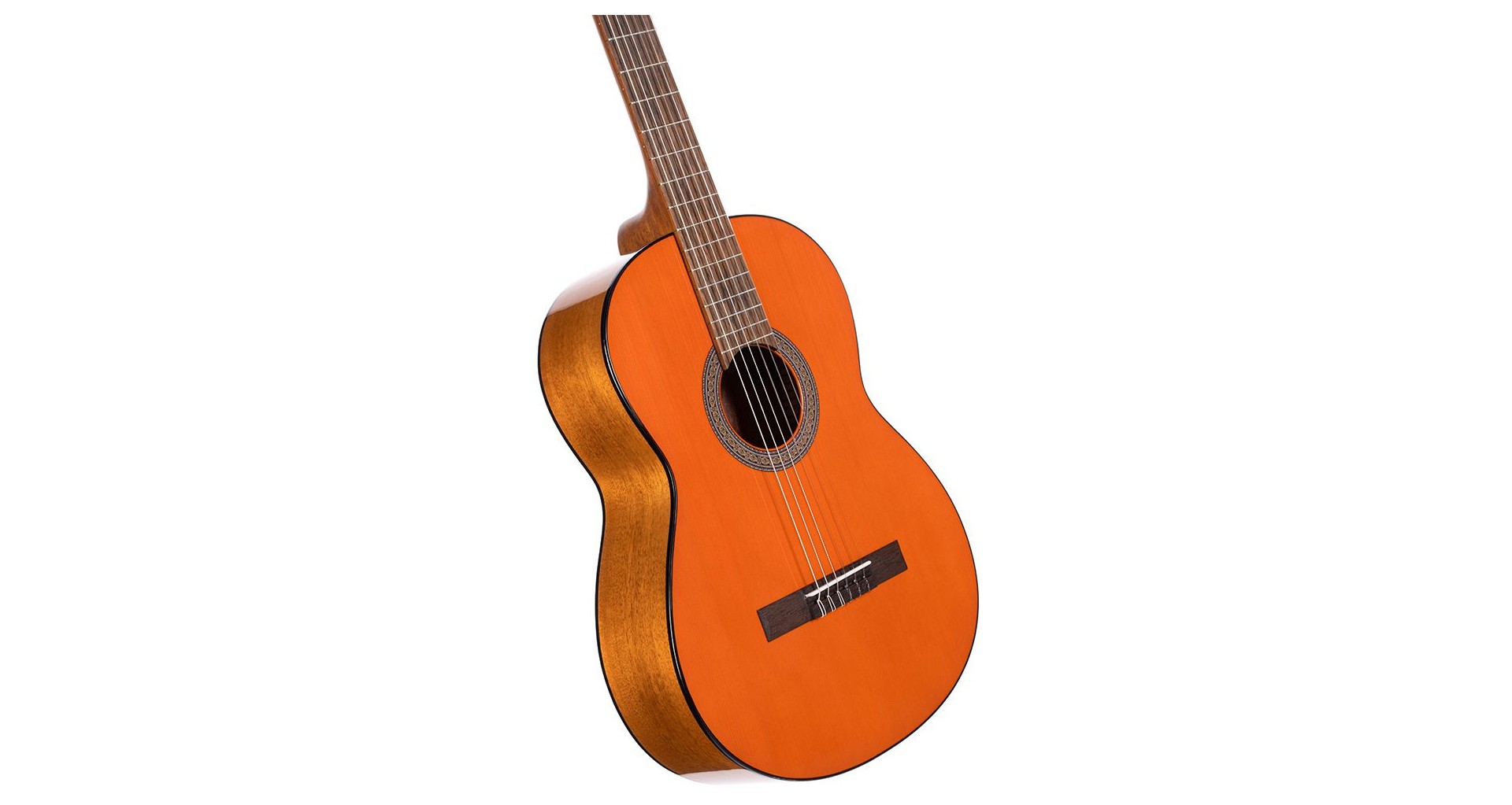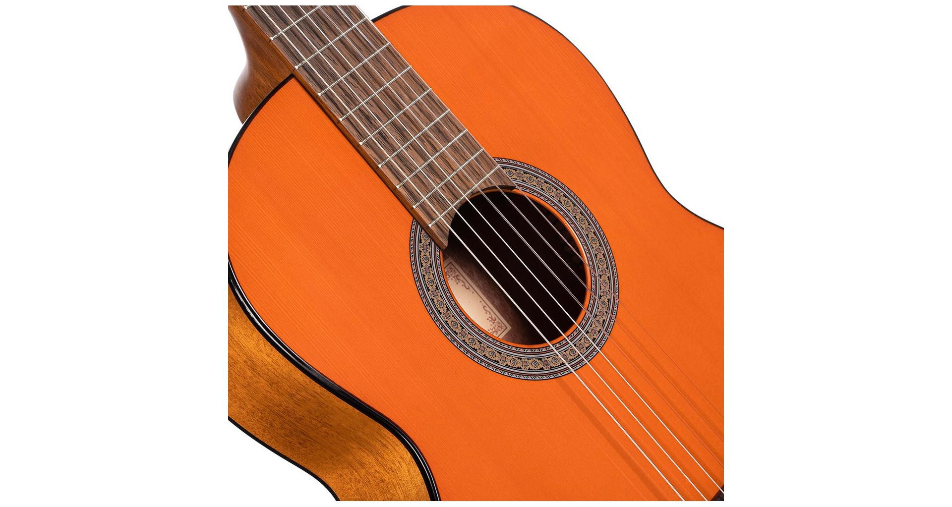 Chitara clasica Cort AC100DX-YT prezinta o constructie solida, dispune de o fata din lemn de molid, spate si laterale din mahon si produce o sonoritate calda si detaliata. Gatul din lemn de mahon cu tastiera si bridge din merbau asigura atat confort, cat si durabilitate. Chitara include corzi Savarez Cristal Corum, bracing clasic de tip "fan", are o scala de 650 mm si un nut de 52 mm, fiind excelenta atat pentru incepatori, cat si pentru interpretii avansati. Finisajul elegant YT - Yellow Tint - completeaza designul clasic.