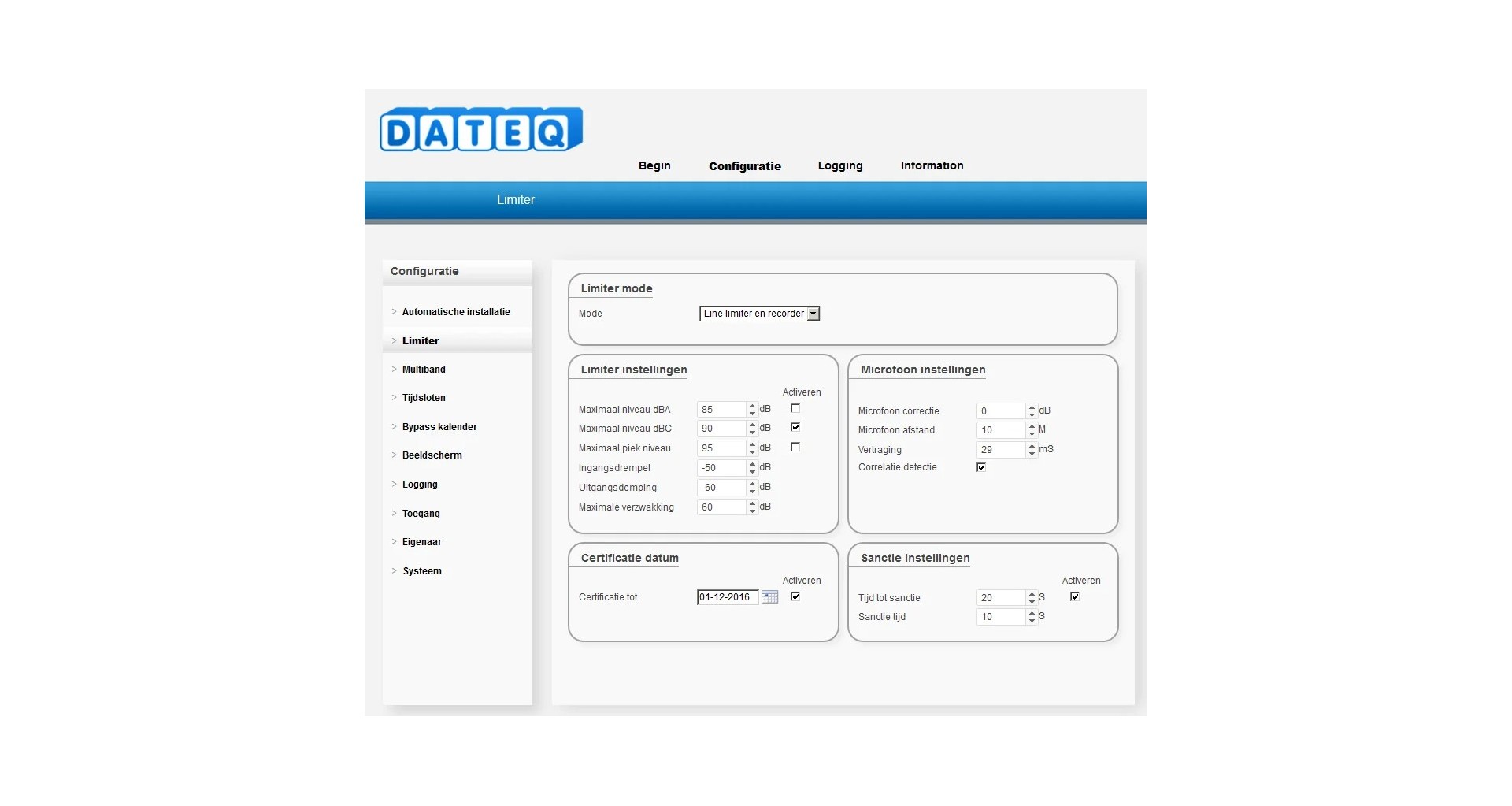 Limitator cu 2 canale, echipat cu microfon de masurare si detectie de corelatie, care separa influenta publicului de comportamentul limitarii. Masoara dB(A), dB(C) si dB peak si utilizeaza limitare pe 10 benzi cu EQ integrat. Este ajustabil prin threshold si output si inregistreaza nivelul sonor timp de 365 zile, inclusiv depasiri si evenimente. Se poate controla si monitoriza prin interfata web, fara instalare de software, si poate fi accesat atat prin reteaua locala, cat si remote prin internet. Dispune de timer cu 3 intervale zilnice. Format rack 19 inch / 1U, conexiuni XLR.