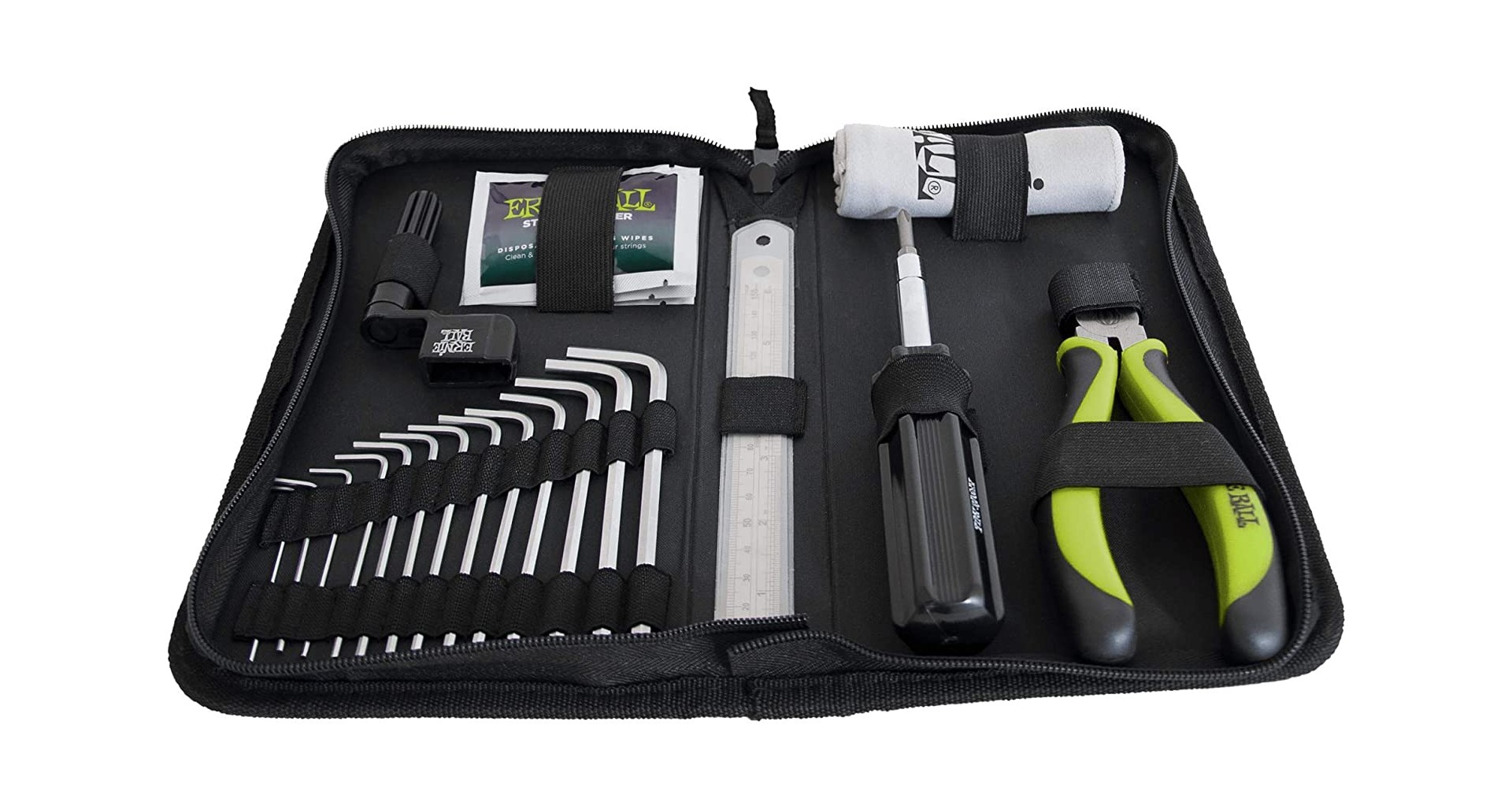 Kit pentru intretinere chitare ce include toate uneltele necesare pentru schimbarea corzilor, ajustarea intonatiei, a action-ului si curatare.