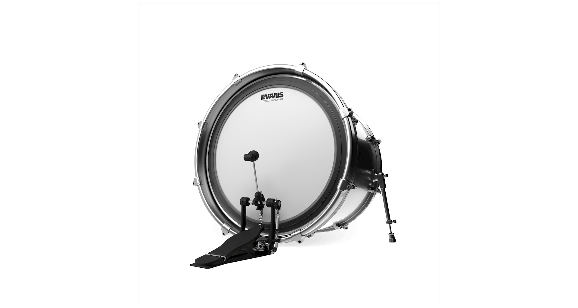 Fata de bataie EMAD UV, pentru toba mare, este una dintre cele mai versatile si mai rezistente fete de toba cu un singur strat. Din punct de vedere sonor, aceasta fata are un atac echilibrat, sustain lung si un ton "bright". Datorita tehnologiei EMAD, aceasta permite si ajustarea atacului, sustain-ului si a focusului. De asemenea, fetele Evans dispun si de tehnologia Level 360, ce faciliteaza acordarea si extinde intervalul tonal.