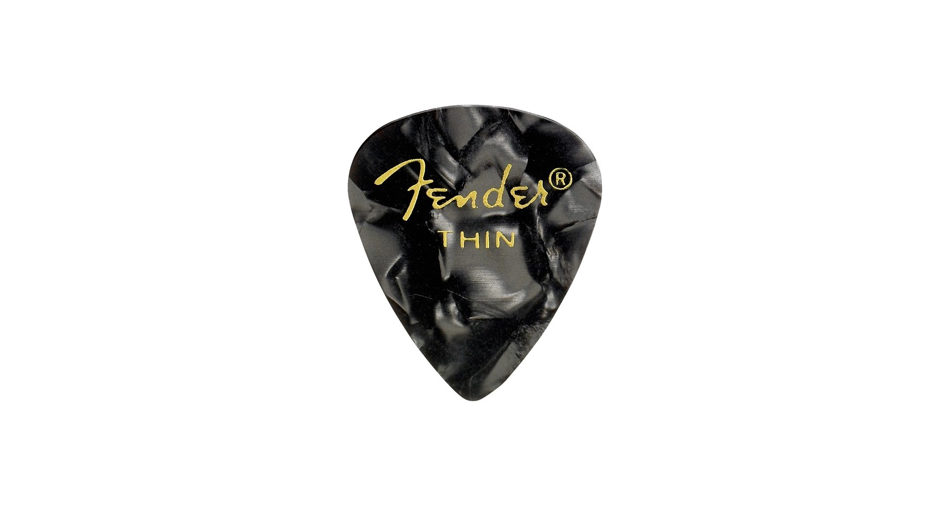 Pana Fender pentru chitara, realizata din material Celluloid, cu forma 351 si grosime Thin de 0.46 mm. Finisaj premium tip Black Moto / Negru.