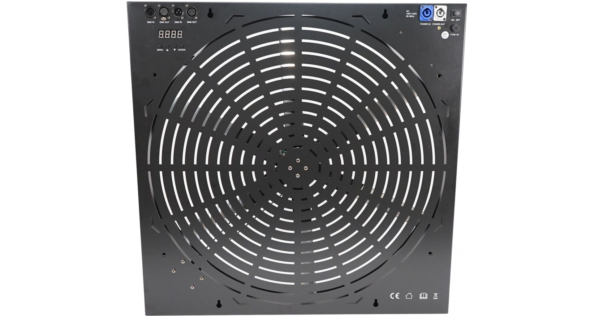 Efect de tip ventilator cu stroboscop variabil, pale cu 792 LED-uri SMD 5050 RGB, 2 grupuri de LED-uri cu 3 pale per grup. Efectul poate fi controlat in modurile DMX, auto, sound, activation, master/slave, cat si prin canalele DMX selectabile 4 / 8 / 11. Dimensiuni: 700 x 700 x 85 mm