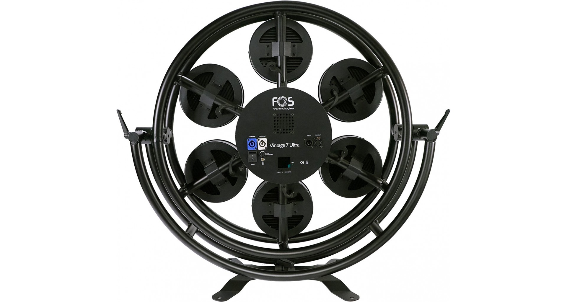 FOS Vintage 7 Ultra este un efect de lumina retro echipat cu 7 LED-uri Warm White de 60W, cu o temperatura de culoare 2200K si 168 LED-uri RGB 5050 SMD de 0,5W ca fundal. Ofera control independent al LED-urilor si functie pixel control. Poate fi controlat prin 9, 10, 28 sau 38 canale DMX, include conexiuni 3pin XLR si powerCON in/out, afisaj LCD si carcasa din aliaj de aluminiu. Alimentare 110-240V AC, consum 520W. Dimensiuni 860 x 966 x 170 mm, greutate 19 kg.