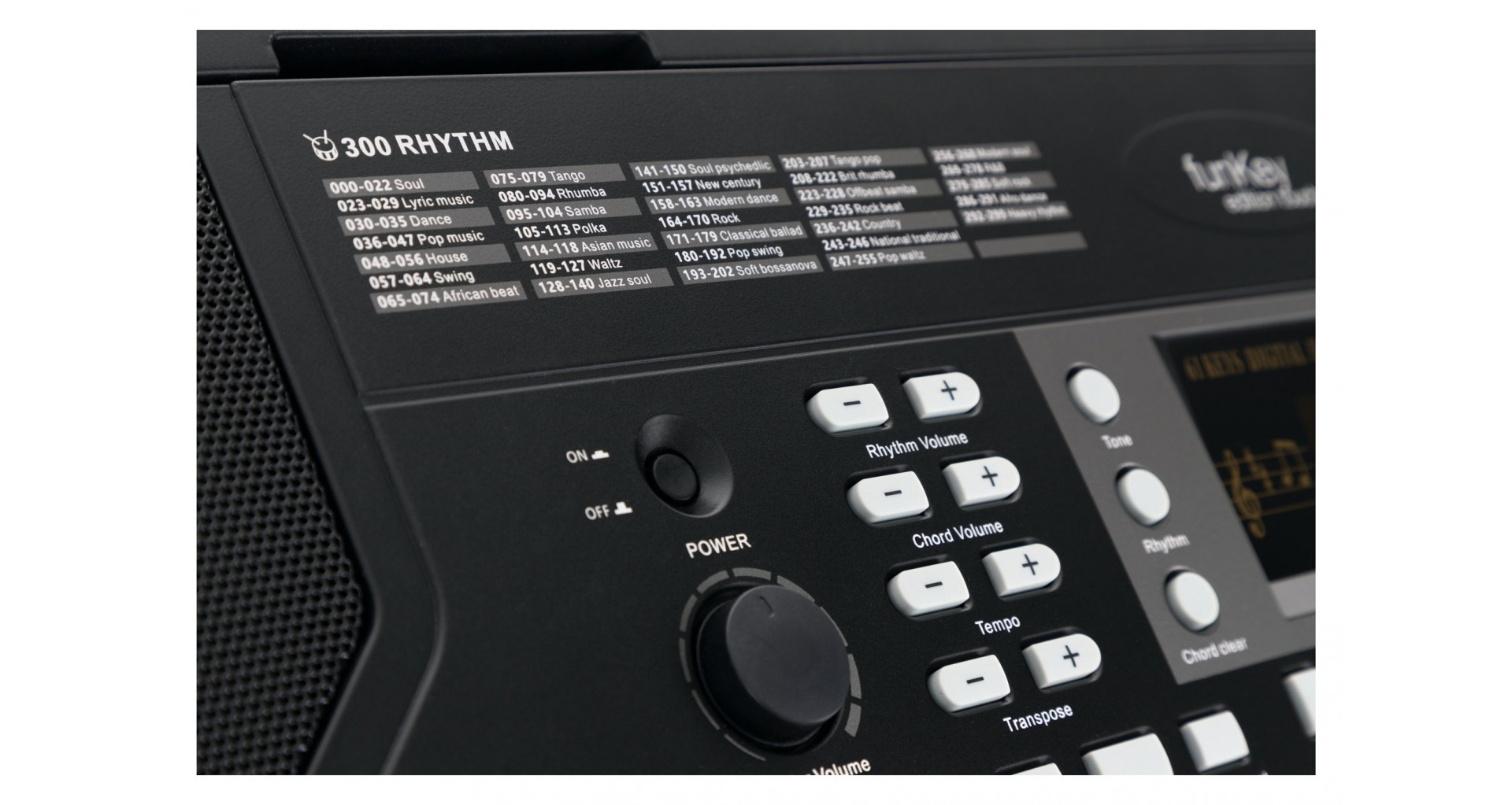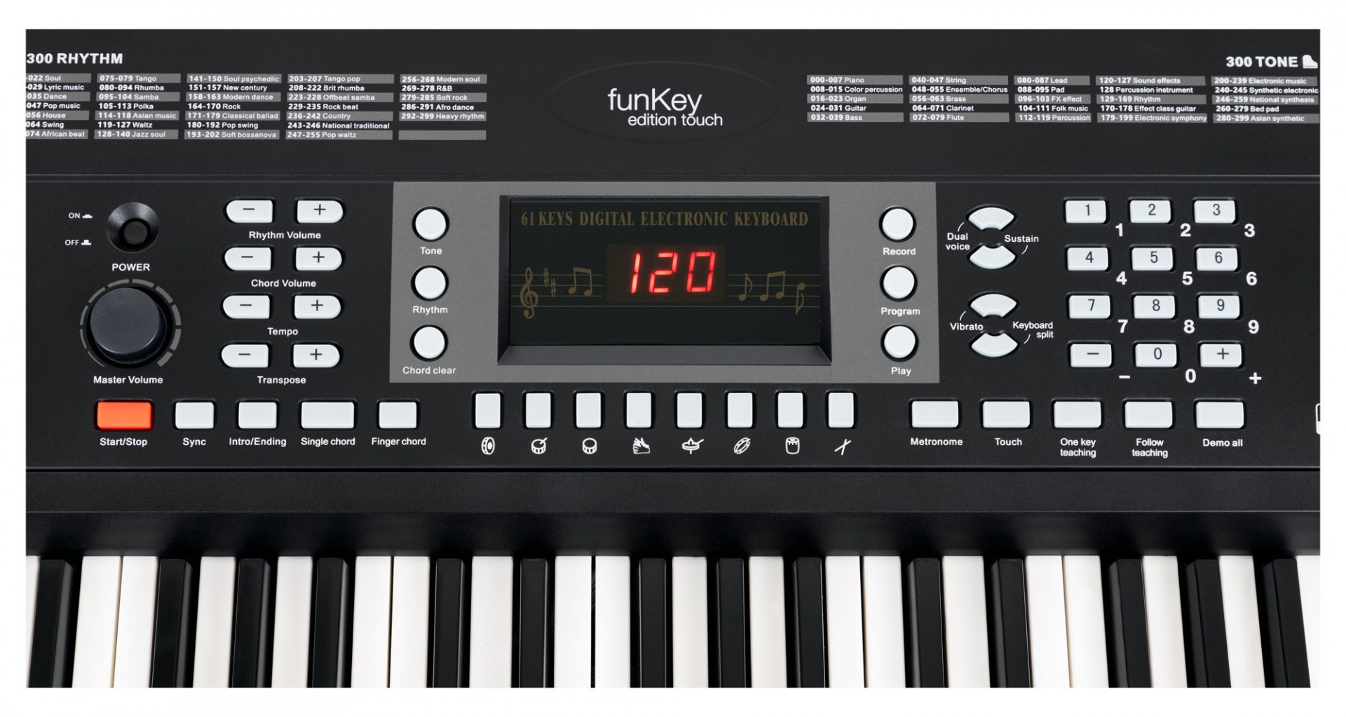 FunKey 61 Edition Touch este o claviatura de 61 de clape cu raspuns la atingere, cu 300 de tonuri si 300 de ritmuri. Meniul este controlat cu ajutorul unui ecran LCD. Acest instrument perfect pentru copii si incepatori are functie de acompaniament si invatare, sustain si vibrato, doua voci si functie split.
