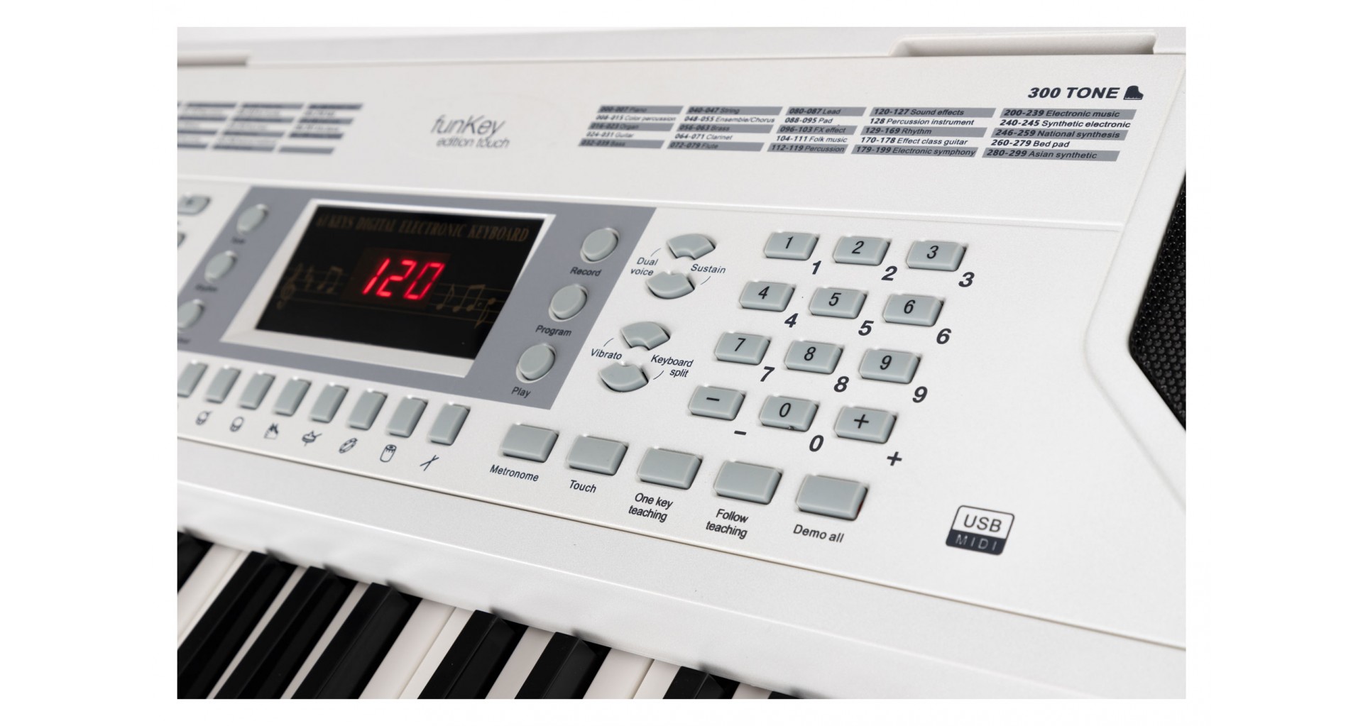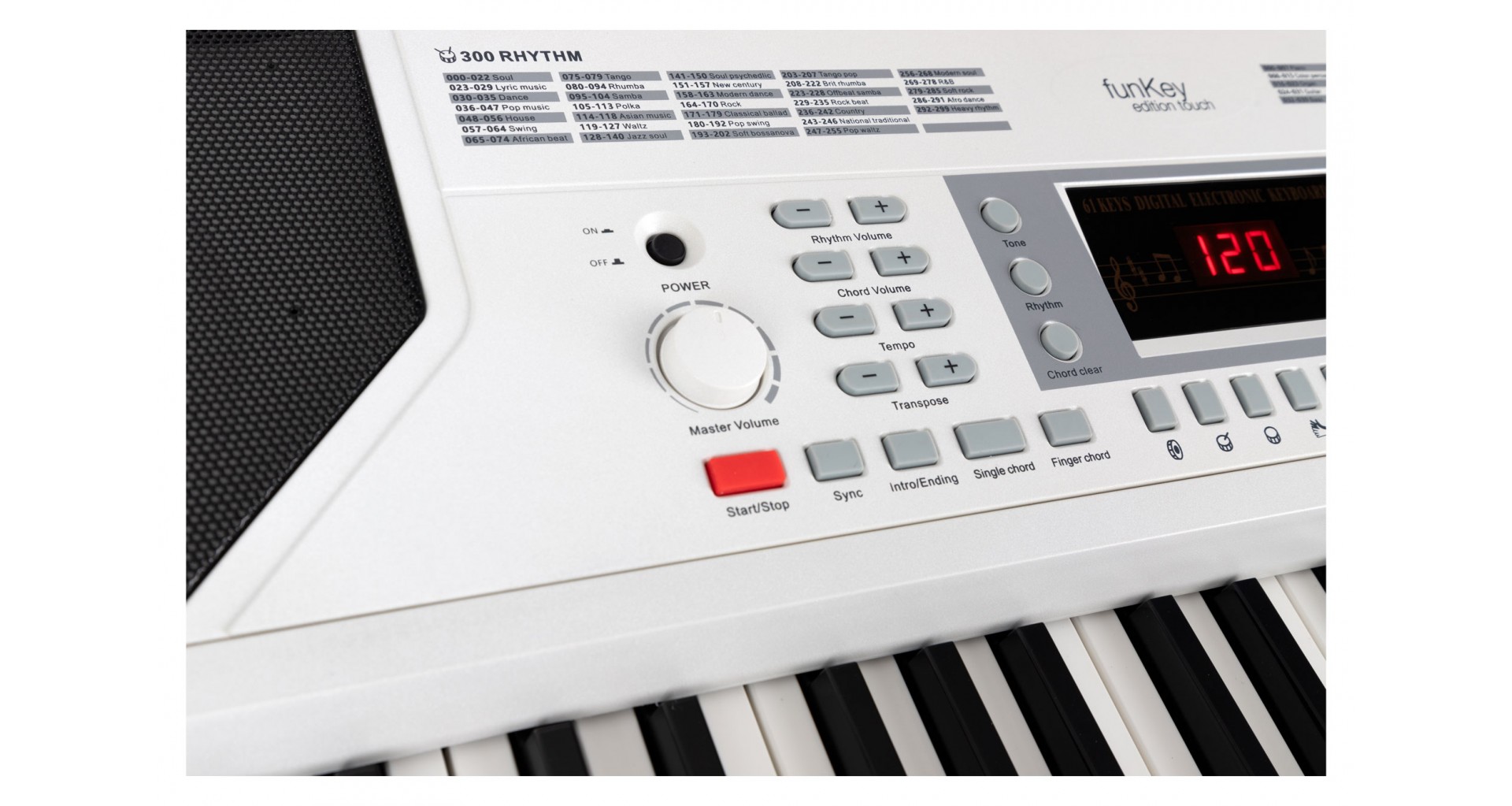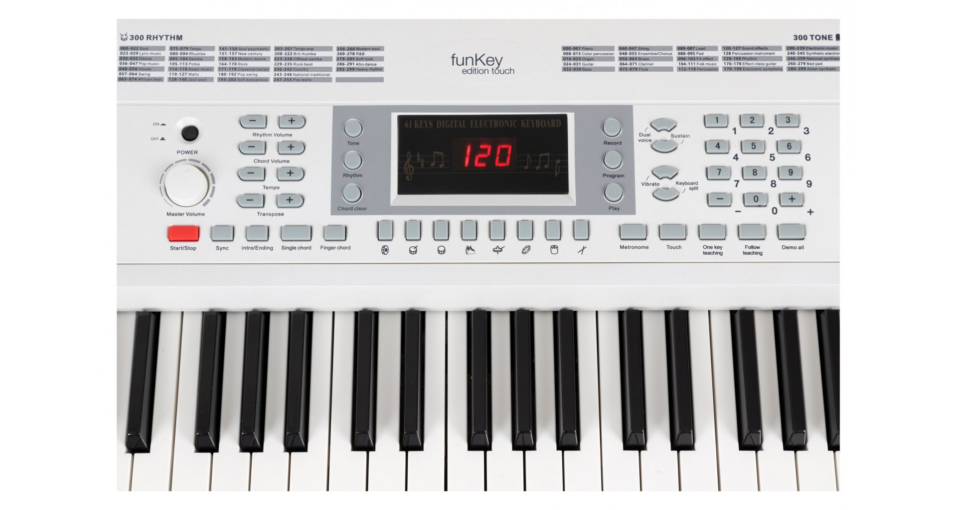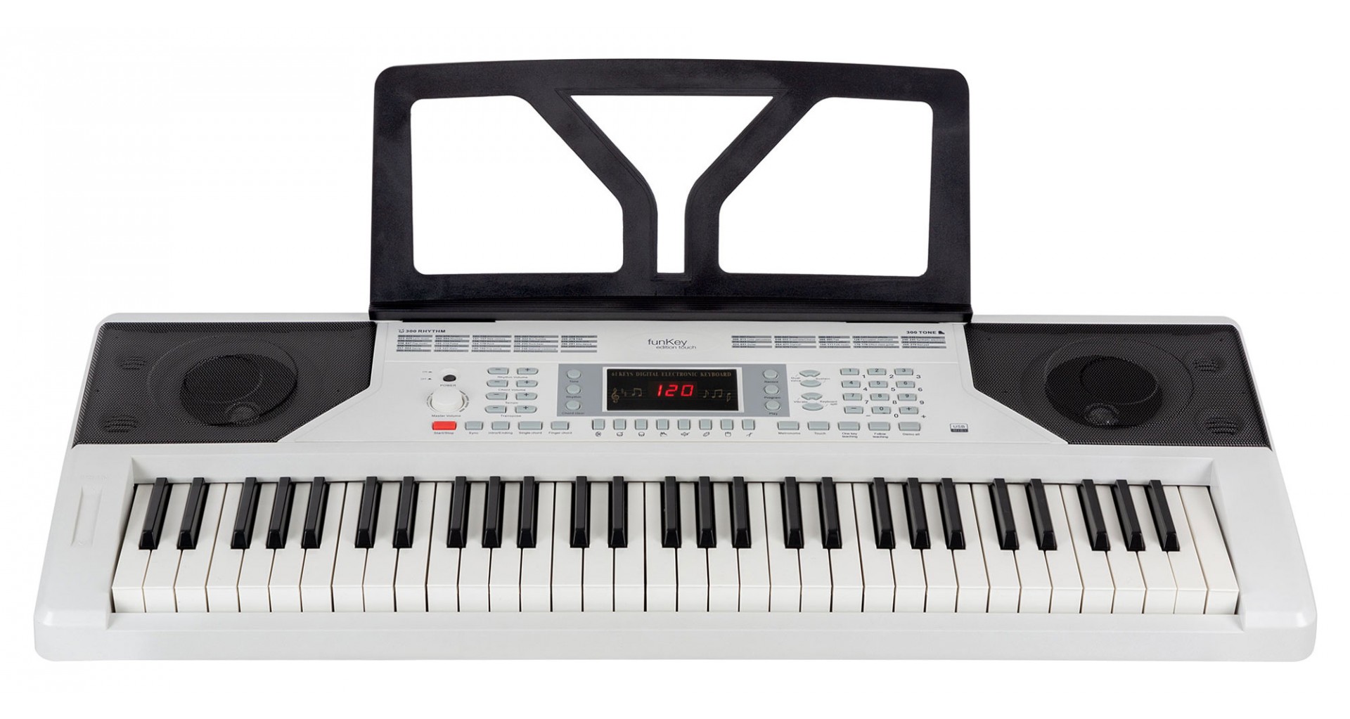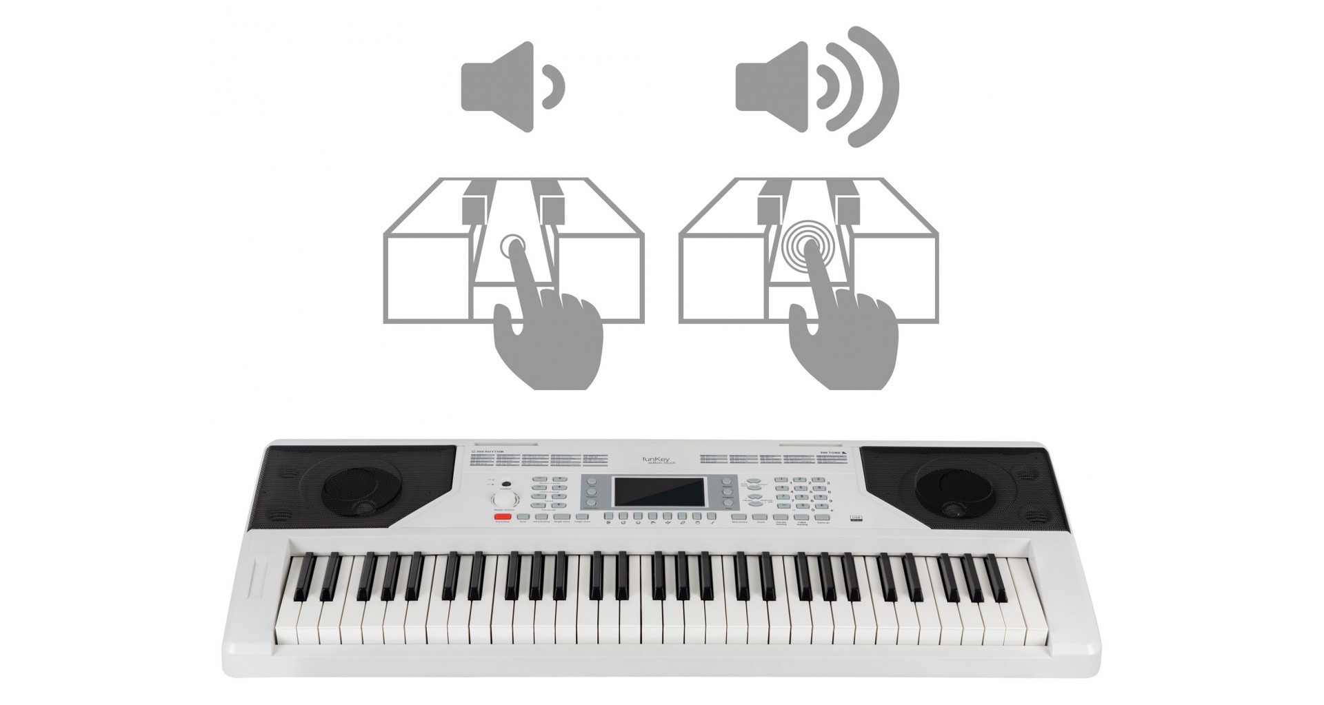 FunKey 61 Edition Touch este o claviatura de 61 de clape cu raspuns la atingere, cu 300 de tonuri si 300 de ritmuri. Meniul este controlat cu ajutorul unui ecran LCD. Acest instrument perfect pentru copii si incepatori are functie de acompaniament si invatare, sustain si vibrato, doua voci si functie split.