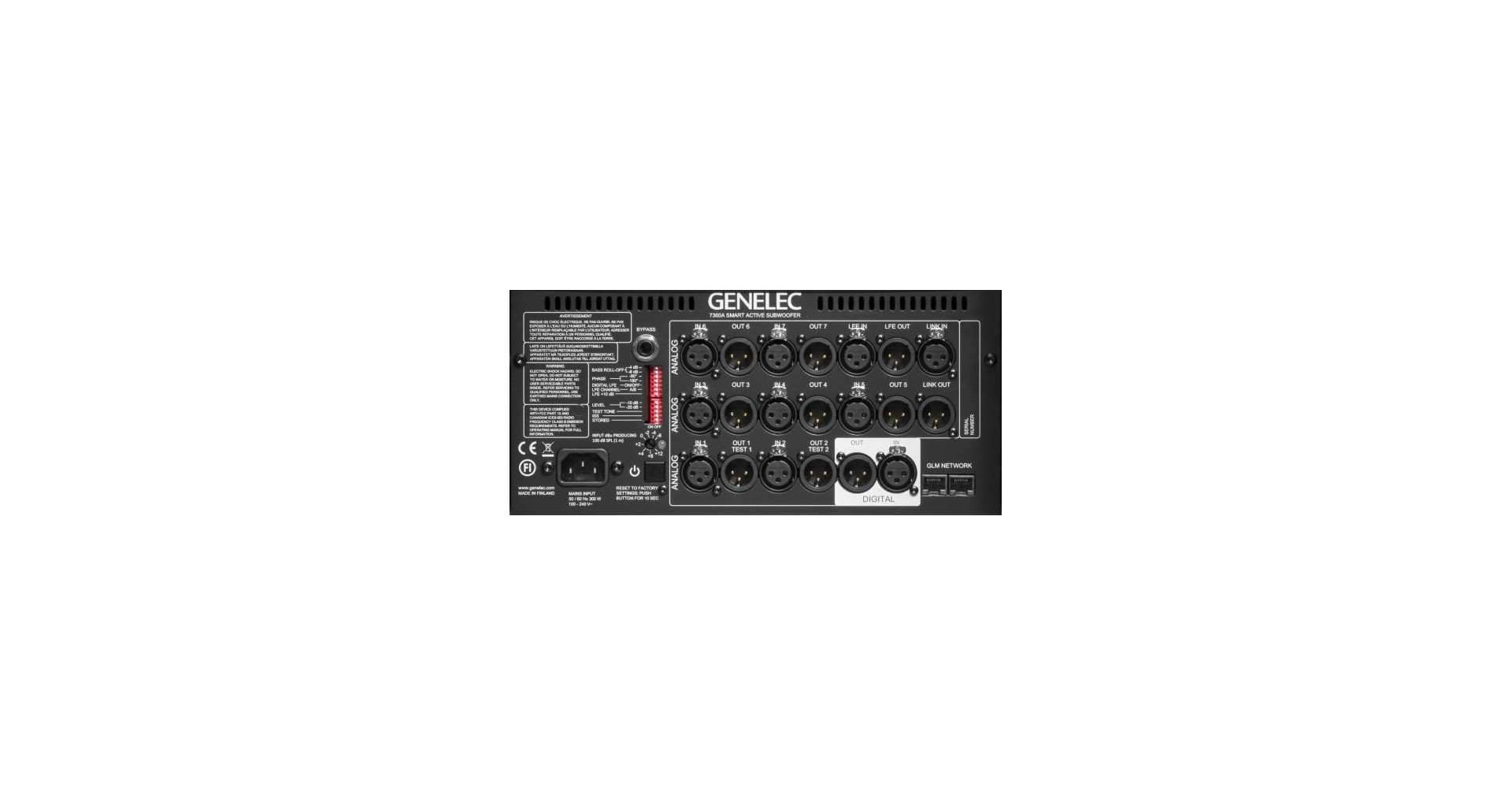 Filtrele crossover-ului activ de la Genelec contine componente electronice ce sunt operate la nivele joase de semnal pentru intrarile amplificatoarelor.