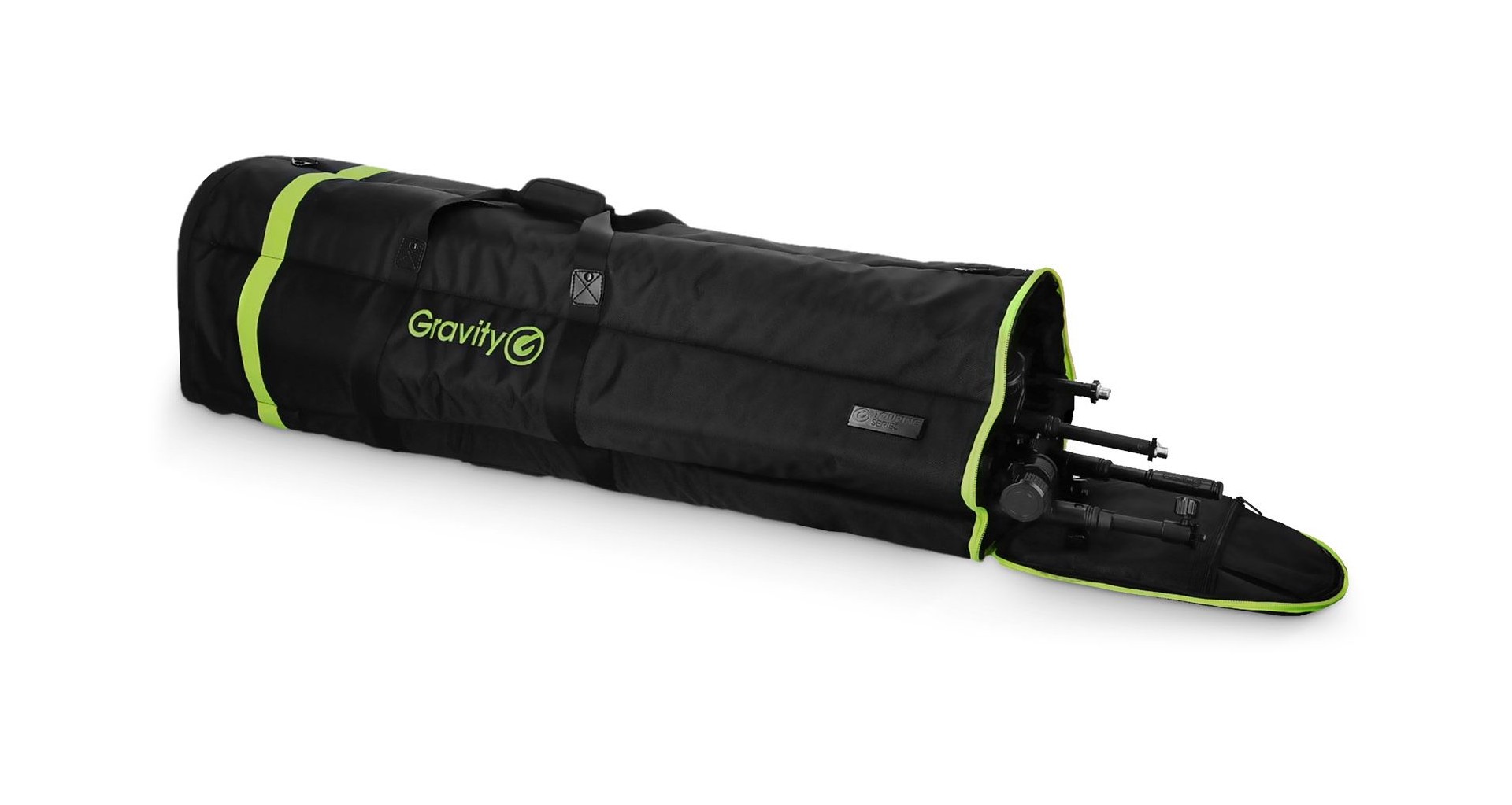 Gravity TBG MS 6 B este o husa de transport profesionala, robusta si versatila, ce poate incadra pana la sase stative de microfon. Confectionata din material nylon 1680 D impermeabil, cu baza de lemn si cusaturi intarite, ofera protectie optima si stabilitate chiar si in conditii de utilizare intensa. Captuseala exterioara de 8 mm si separatoarele interioare protejeaza stativele de socuri si zgarieturi. Husa poate fi utilizata vertical sau orizontal, se inchide cu fermoar si dispune de roti rezistente, maner captusit si curea de umar reglabila (750 - 1.300 mm) pentru un transport facil a pana la 25 kg. Compartimentul transparent pentru etichete de turneu si buzunarele suplimentare pentru accesorii asigura o organizarea eficienta. Dimensiuni: 1100 x 350 x 350 mm. greutate: 3,9 kg.