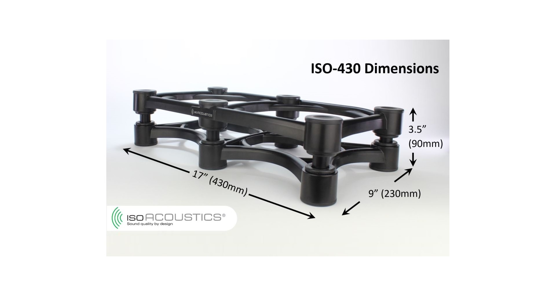 ISO 430 acesta are fata de versiunea veche profil scazut, o noua generatie de izolatori ce imbunatatesc calitatea sunetului. Izolatorii gestioneaza energia difuzorului pentru a reduce vibratiile care rasuna prin suprafata de sustinere pentru a elimina sunetele disonante din zona de ascultare sau din incaperile de asociere si a imbunatatii imaginea stereo.