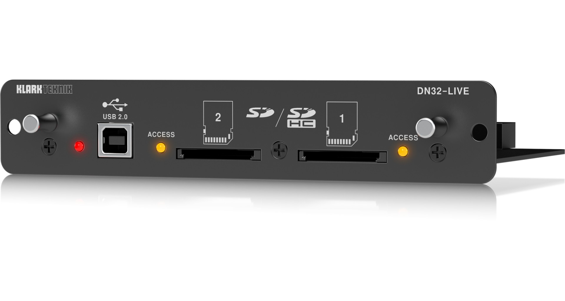 DN32-LIVE este un card de expansiune SD/SDHC si USB 2.0 pentru MIDAS M32 si BEHRINGER X32 cu I/O audio bidirectional pe 32 de canale, oferind functionalitati avansate pentru inregistrare live si studio. Include doua sloturi SD/SDHC pentru inregistrare si redare independenta a fisierelor WAV necompresate pe 32 de canale, pana la capacitatea maxima a cardurilor SD.