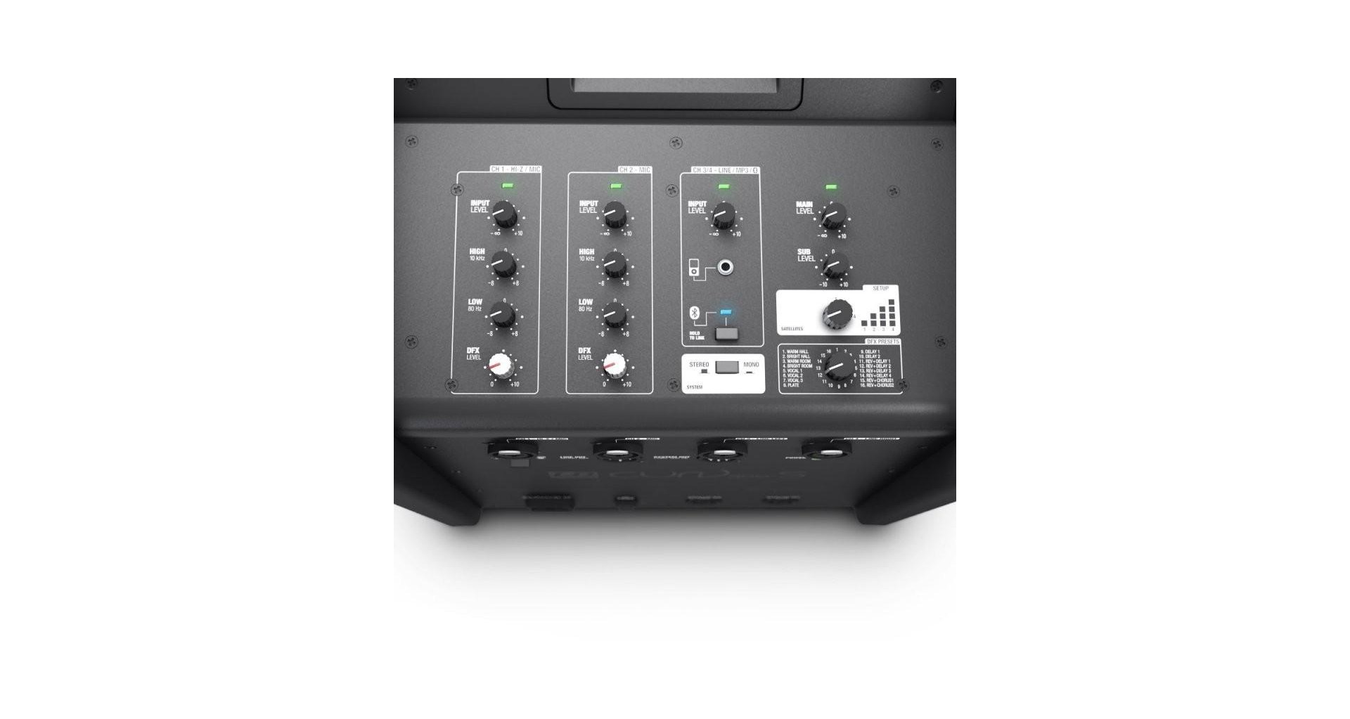 - subwoofer cu mixer integrat in 4 canale, functie Bluetooth, 16 preset-uri DFX, 4 preset-uri DSP