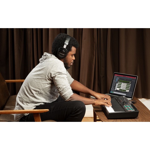 M-Audio Oxygen Pro 49 este o claviatura MIDI cu 49 de clape semi-grele, cu detectare de velocitate, aftertouch si zone asignabile. Include 16 pad-uri RGB cu detectare de velocitate, arpegiator, functie de Note Repeat, precum si moduri Smart Chord si Smart Scale. Dispune de 8 potentiometre si 9 fadere asignabile, roti de pitch si modulatie, taste de transport si navigare, precum si de afisaj OLED. Conectivitate: USB-B, MIDI Out 5-pin, intrare sustain 6.3 mm. Claviatura MIDI M-Audio Oxygen Pro 49 este compatibila cu Mac si Windows si include software dedicat downloadabil.