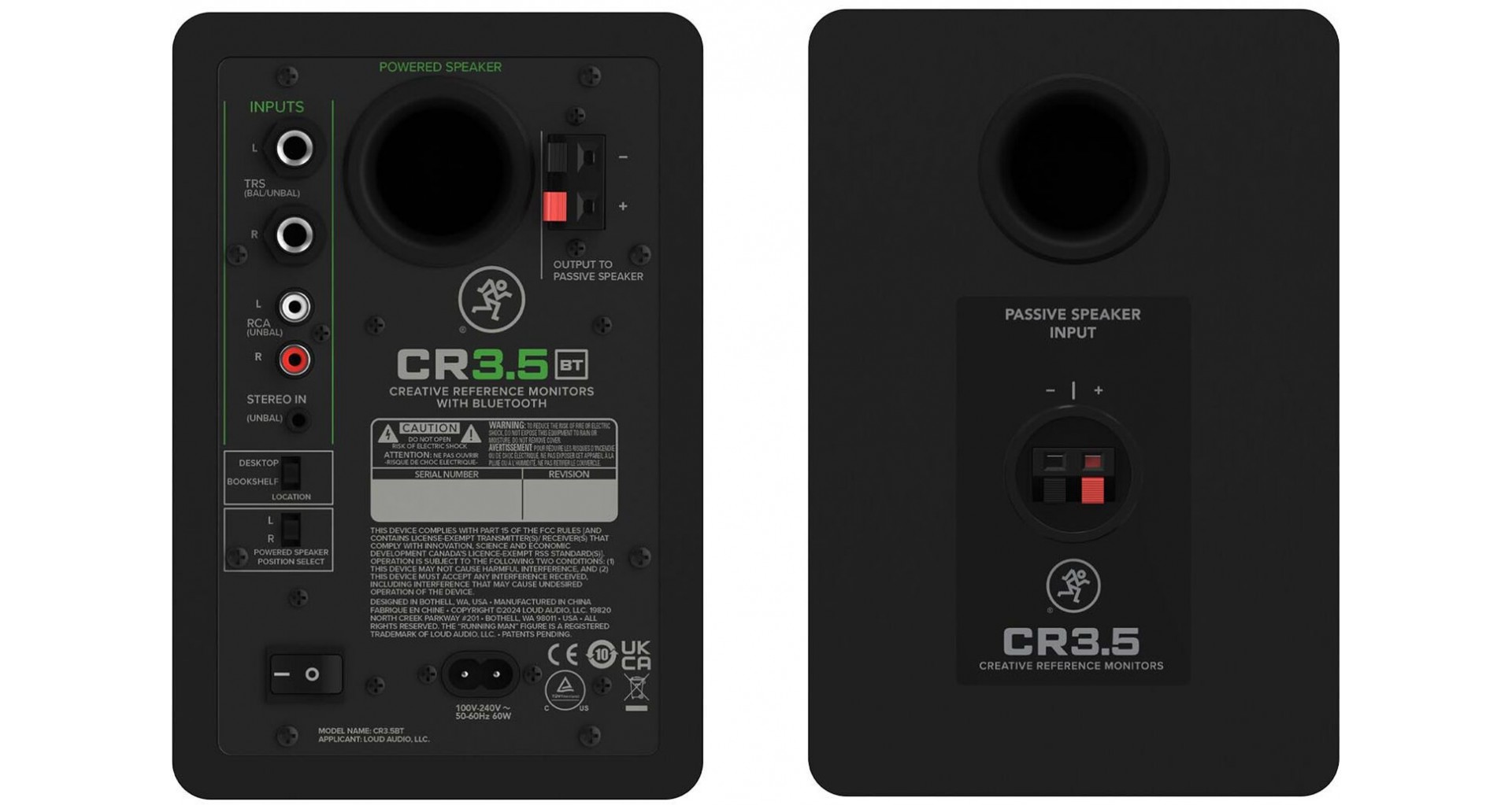 Mackie CR3.5BT este o pereche de monitoare multimedia active cu woofer de 3.5", tweeter cu dom de matase si amplificare Class D, cu putere totala de 50 W peak. Are un raspuns in frecventa de 70 Hz - 20 kHz si un nivel maxim de 97 dB, suficient atat in spatii mici, cat si medii. Bluetooth 5.0 permite redarea wireless de pe telefonul mobil, iar intrarile TRS, RCA si jack 3,5 mm asigura o compatibilitate extinsa cu o diversitate de echipamente. Comutatorul Desktop/Bookshelf optimizeaza sunetul in functie de pozitionare, iar controlul de ton ajusteaza caracterul sonor. Include iesire pentru casti si o sursa de alimentare universala.