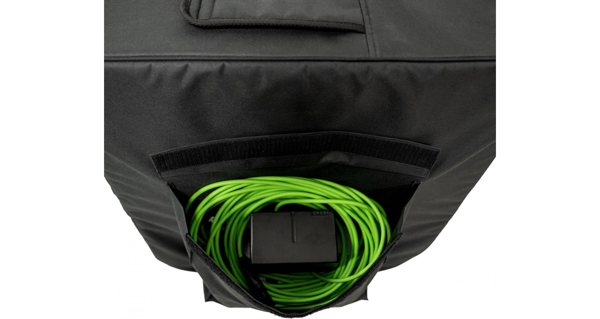 Husa de protectie pentru subwoofer-ul portabil Mackie ThumpSub GO. Husa include un buzunar frontal mare pentru accesorii precum cabluri si o baterie suplimentara.