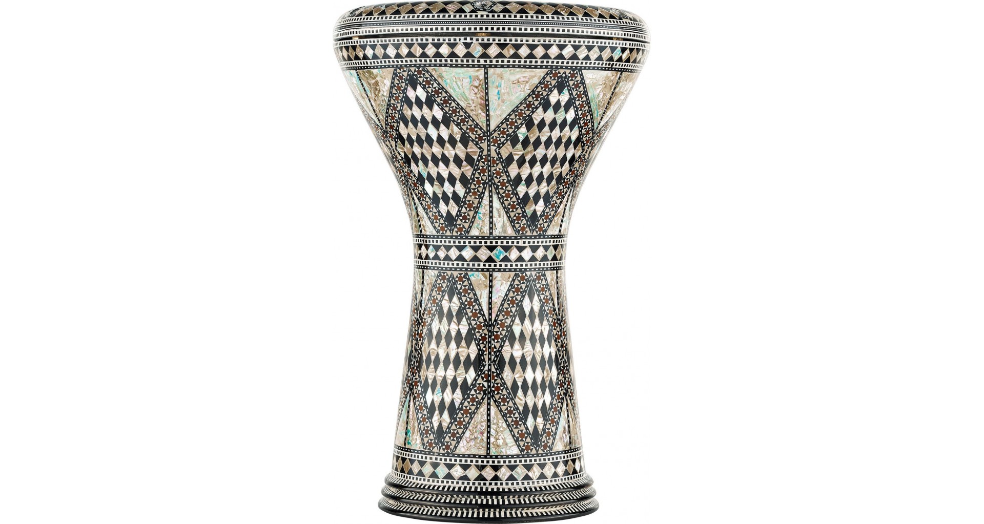 Instrument de percutie Doumbek din seria MEINL Percussion Artisan Edition fabricat in egipt. Instrumentul prezinta un finisaj mozaic autentic creat cu insertii sidefate mother-of-pearl. Instrumentul este turnat din aluminiu masiv, prezinta o calitate ridicata si produce o sonoritate placuta. Finisaj Mosaic Royale