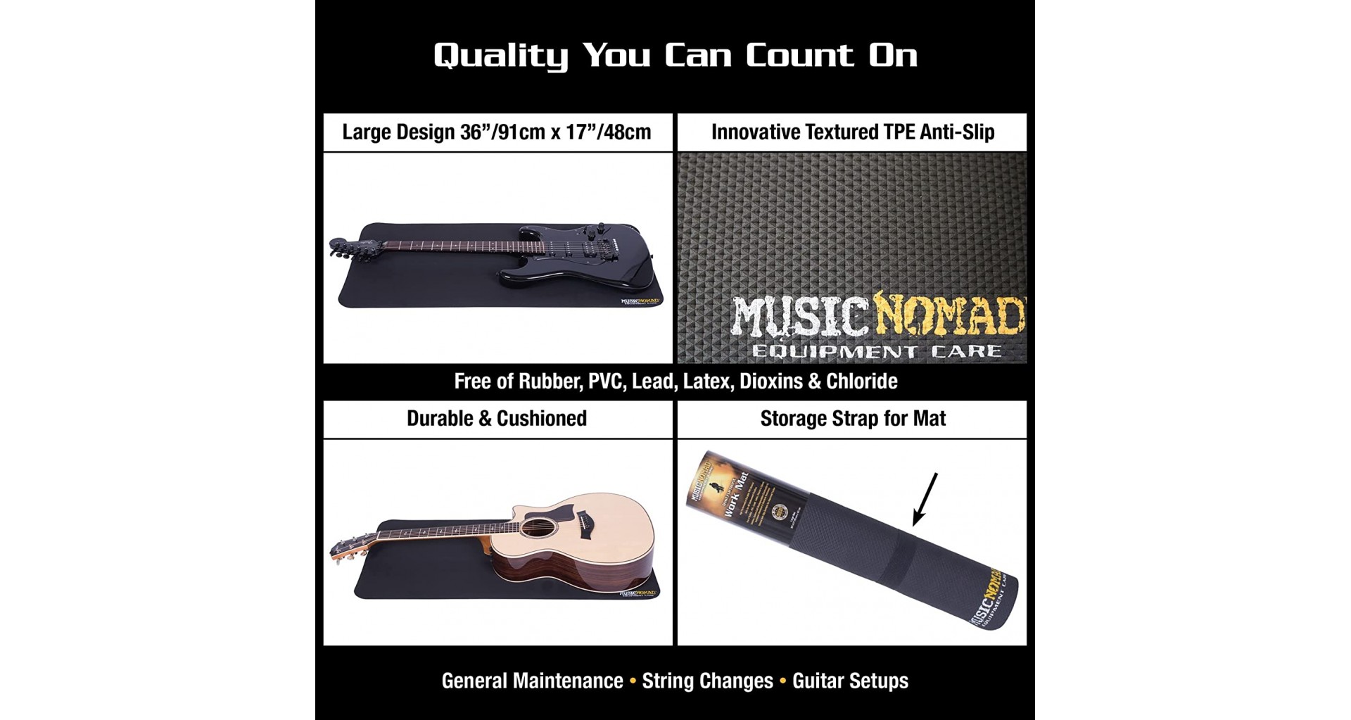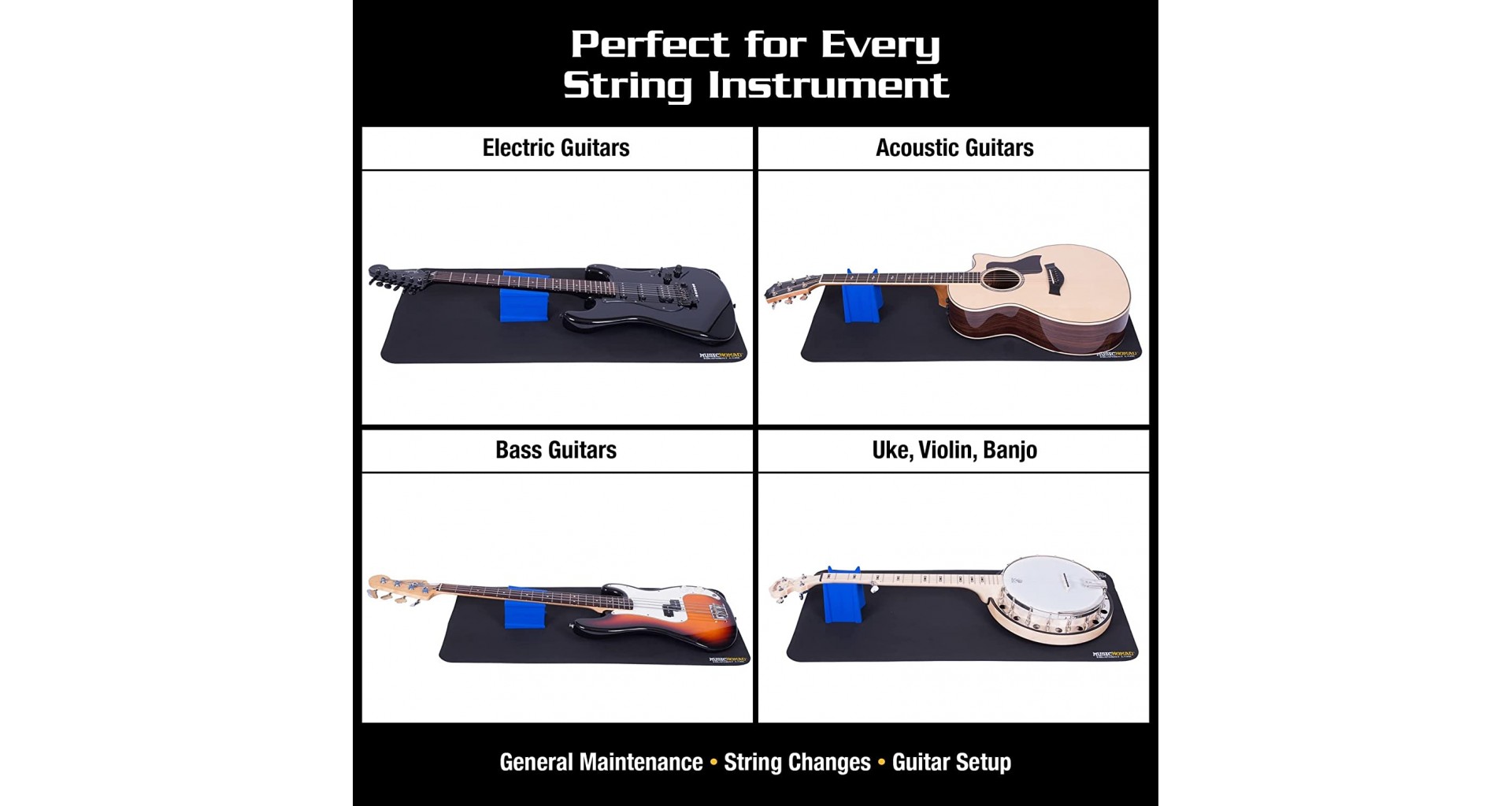 Set pentru intretinerea chitarelor care include covoras aderent (91 x 43 cm) si suport pentru grif. Este ideal pentru setup-uri de chitare, bass-uri si nu numai.