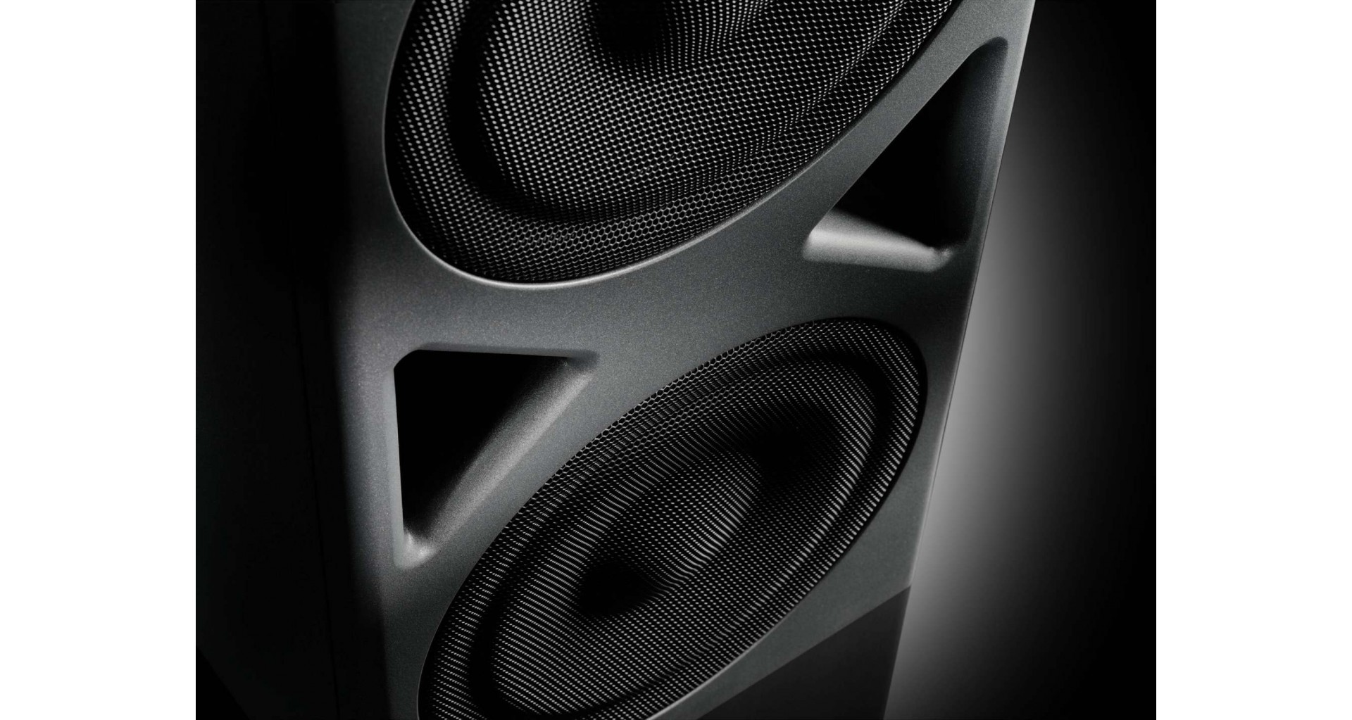 Echipat cu doua difuzoare frontale de 10 inch, ofera o extensie de frecventa pana la 16 Hz si un raspuns clar, chiar si la volume ridicate. Designul cu doua difuzoare asigura mai multa putere si distorsiuni reduse, iar porturile frontale optimizate permit amplasarea flexibila in incapere, inclusiv aproape de pereti sau incastrata.