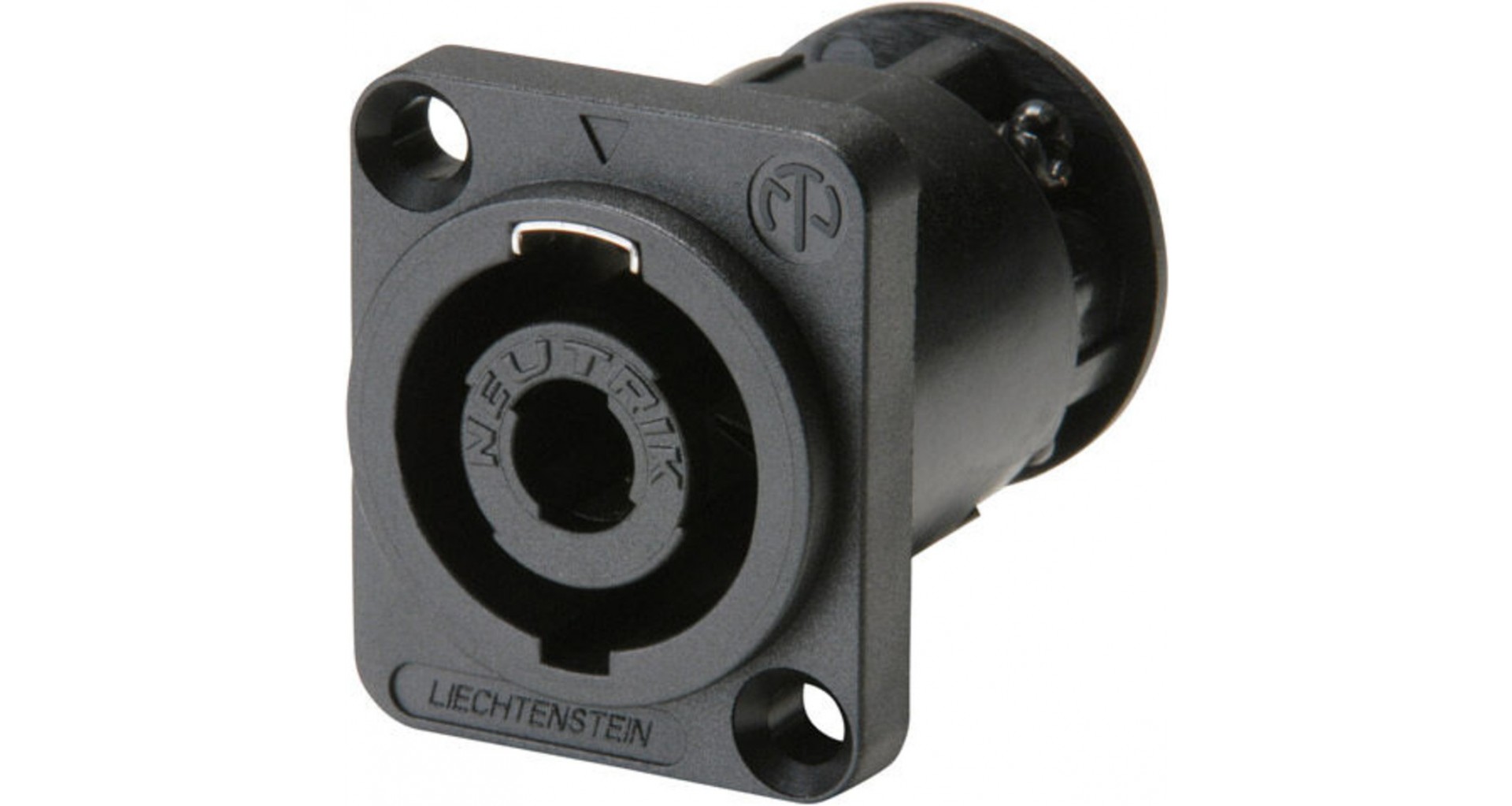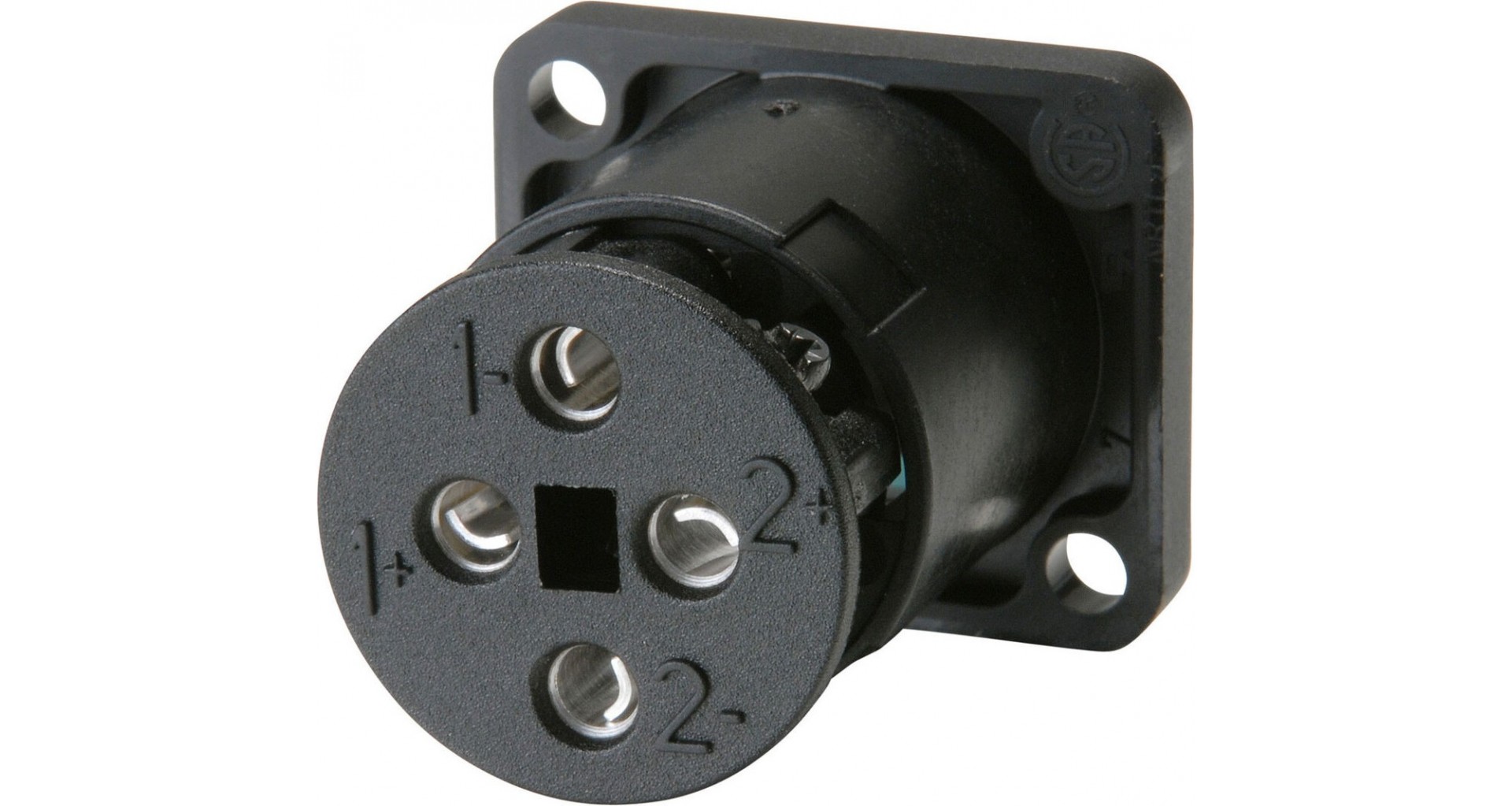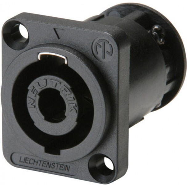 Conector Speakon tata cu 4 pini, negru, borne cu filet. Conectorii de panou Speakon reprezinta standardul din industria audio pentru conectarea boxelor si a amplificatoarelor. Acestia beneficiaza de un sistem metalic unic de blocare ce realizeaza contactul doar dupa introducerea si blocarea completa a mecanismului.