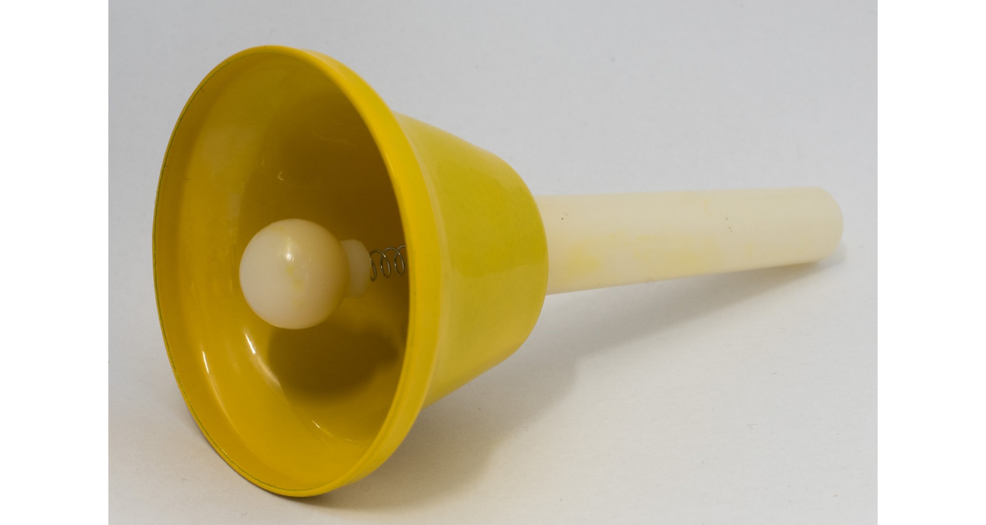 Clopot metalic cu maner, acordat in E3 (mi). Are un diametru de 74 mm si o inaltime de 130 mm (inclusiv manerul). Culoare: Galben