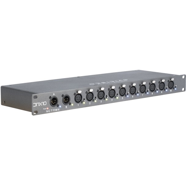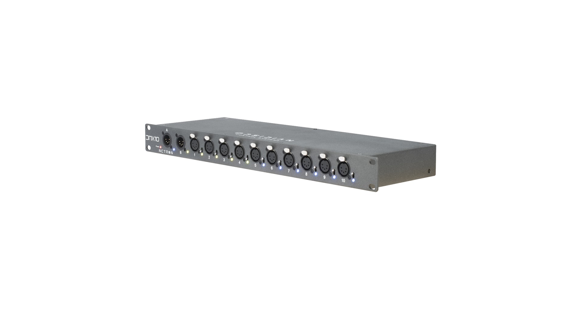 DMX10-5 este un splitter DMX cu 10 porturi cu posibilitate de montare in rack, intrari duble si iesiri DMX XLR cu 5 pini.