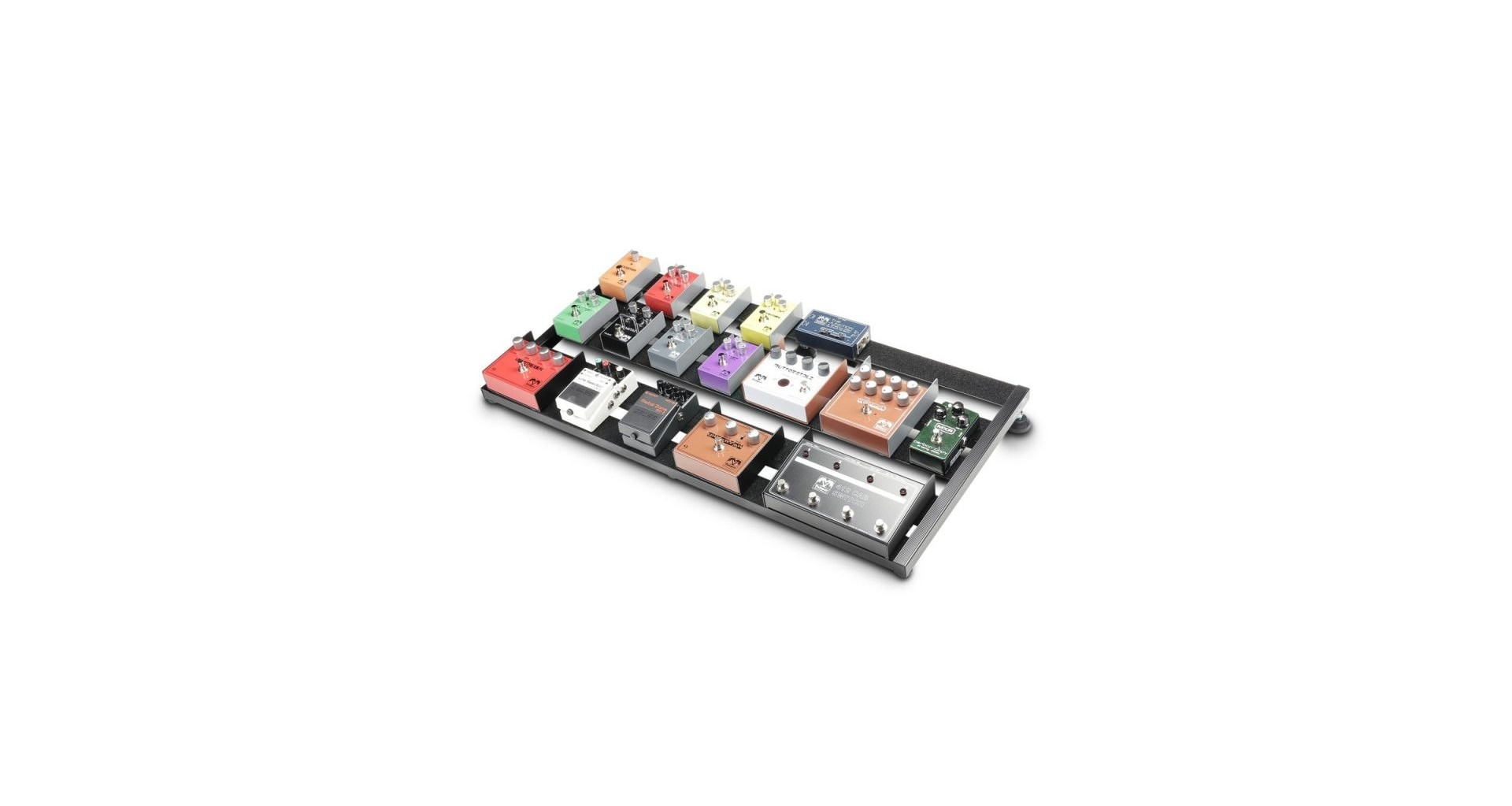 Pedalier pentru toate tipurile de pedale de efecte, indiferent de marca. Barele metalice sunt acoperite deja cu Velcro (partea cu pasla), iar partea de nylon pentru lipit pe pedale este inclusa in pachet intr-o cantitate suficienta. Alimentatoarele pot fi montate sub pedalier, cu un sistem de prindere special destinat acestui lucru, ce consta in 4 carlige si 2 benzi elastice. Constructie din aluminiu, usoara, acest produs fiind destinat transportarii.