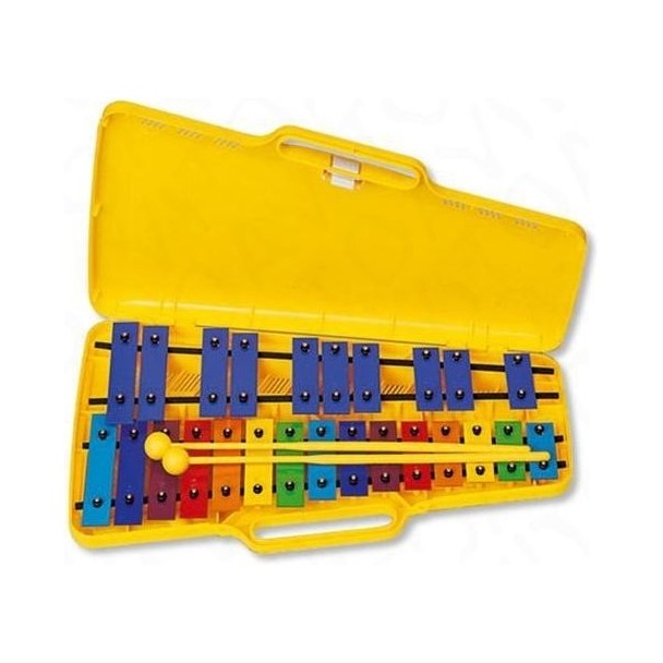 Xilofon / Glockenspiel cromatic, cu un sunet placut, ideal ca instrument educational. Xilofonul include un set de doua ciocanele.