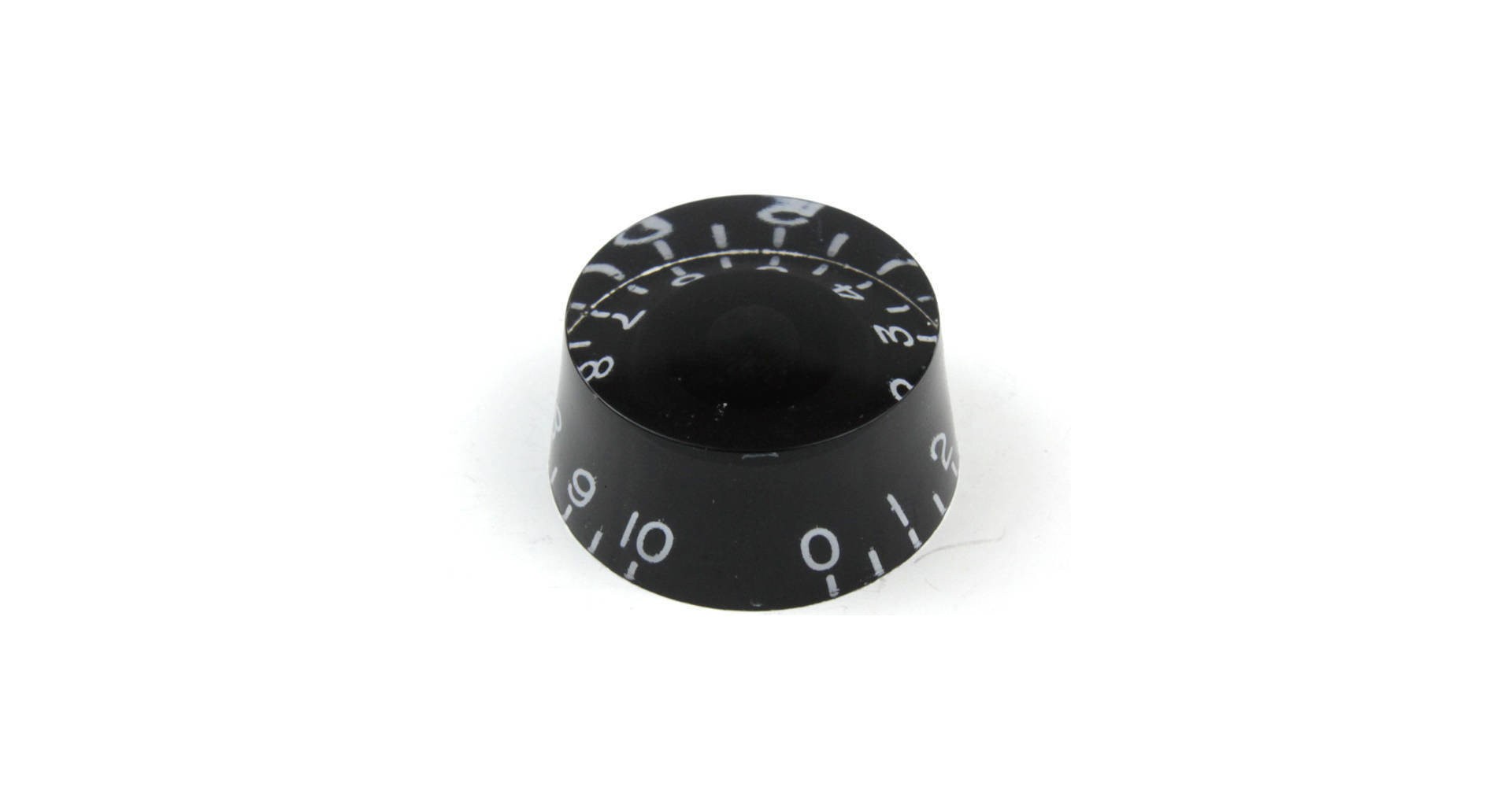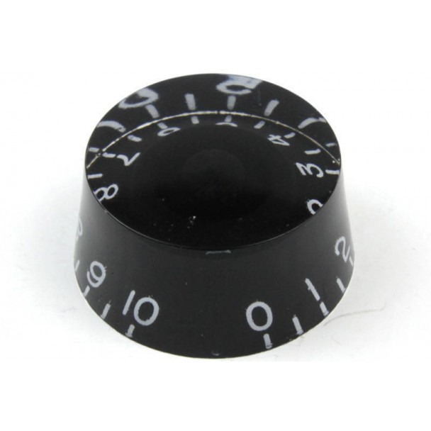 Buton potentiometru transparent, cu baza neagra, pentru chitara electrica.