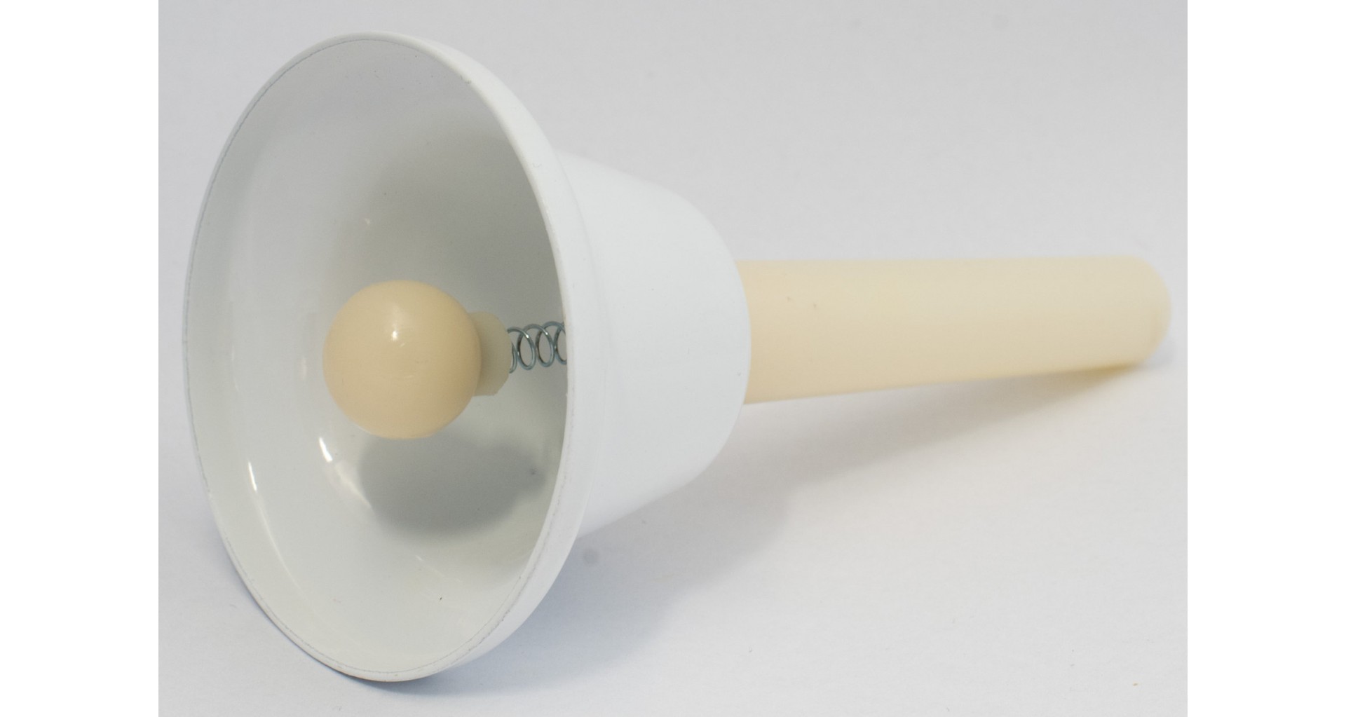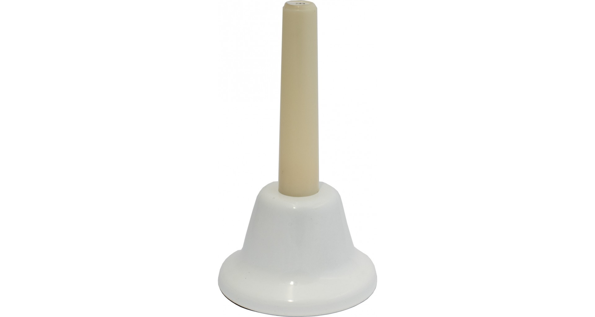 Clopot metalic cu maner, acordat in C8 (do). Are un diametru de 74 mm si o inaltime de 130 mm (inclusiv manerul). Culoare: Alb