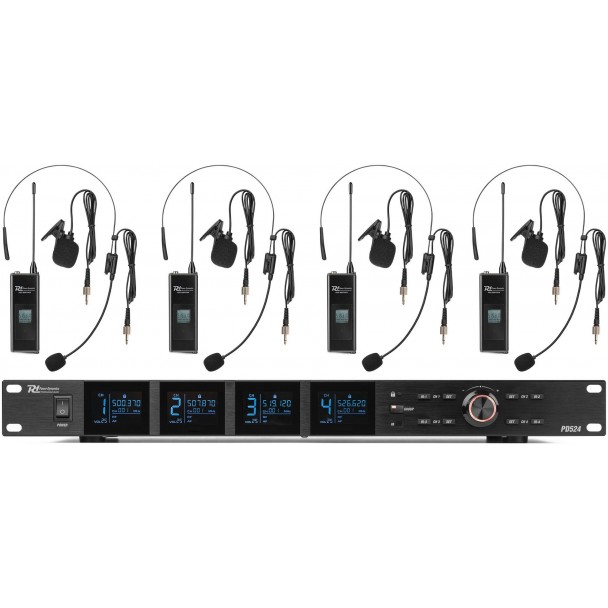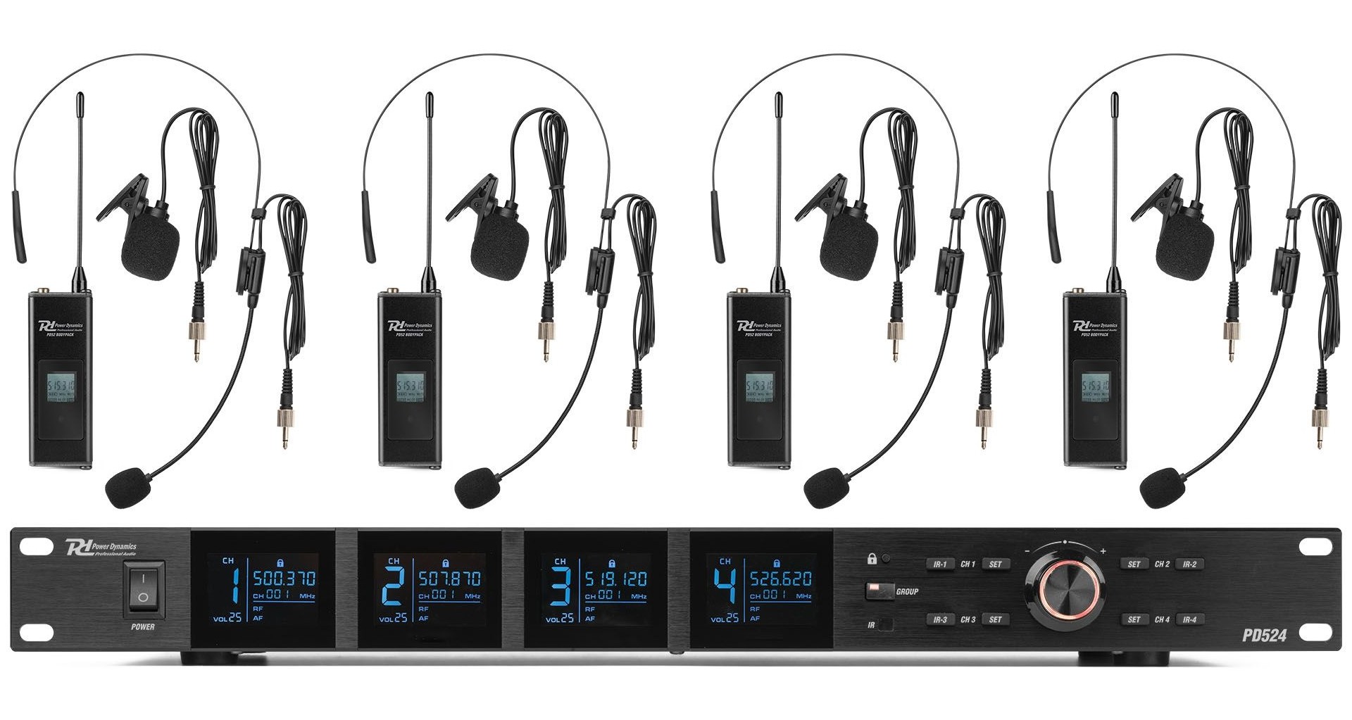 Power Dynamics PD524B UHF Wireless Microphone Set with 4 bodypack microphonesSistem Wireless Headset + Lavaliera ZD-052949 |