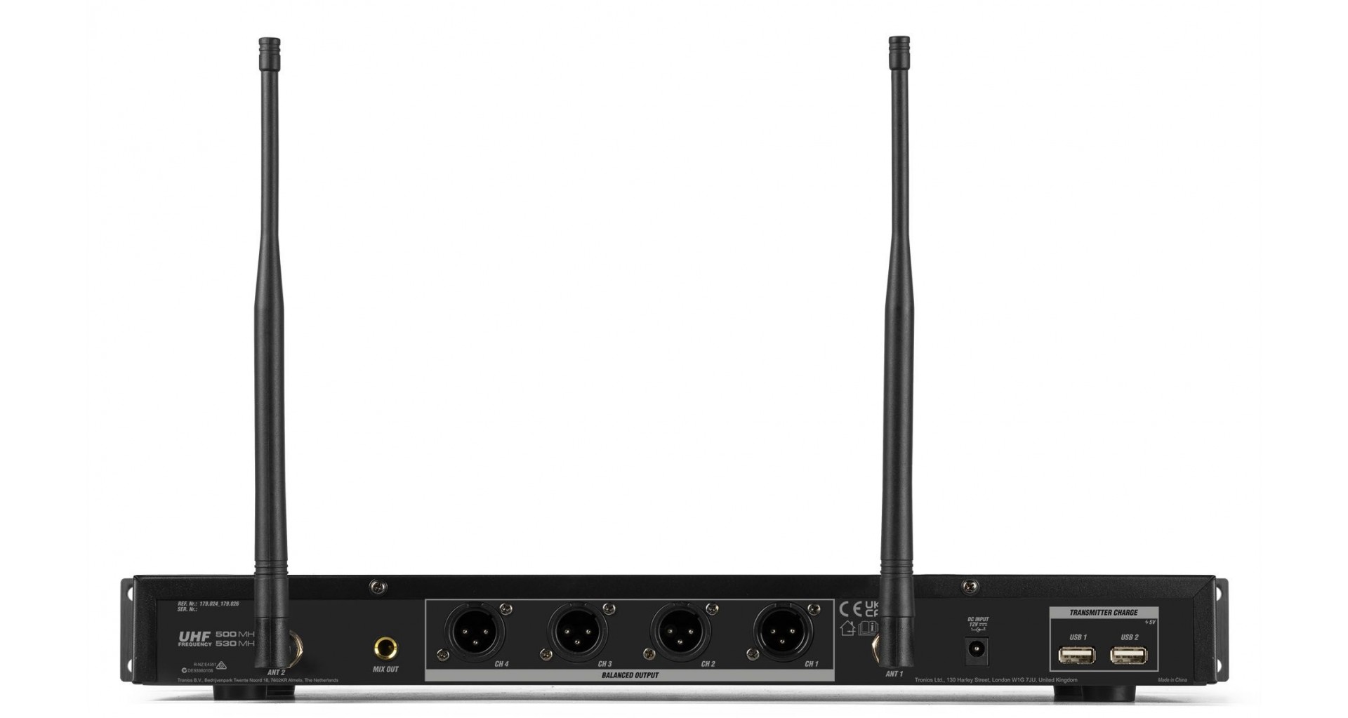 Power Dynamics PD524B este un sistem wireless profesional excelent pentru spectacole, prezentari si aplicatii PA. Sistemul functioneaza in 4 canale UHF cu 100 de frecvente selectabile fiecare, oferind transmisie fara interferente datorita tehnologiei PLL. Ecranul LCD dinamic al receptorului afiseaza nivelul RF/AF, frecventa si starea de mute. Setul include un receptor UHF cu 4 canale in carcasa de aluminiu, 4 bodypack-uri cu microfoane tip lavaliera si headset, antene BNC detasabile, cabluri prelungitoare pentru montarea frontala a antenelor, si adaptor de alimentare. Transmitatoarele includ baterii Li-ion reincarcabile si suporta incarcare USB.