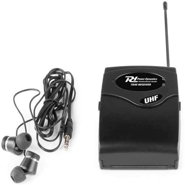 Power Dynamics TG40R este un receptor wireless UHF compact si usor, conceput pentru sisteme de ghidaj turistic, interpretare sau seminarii. Functioneaza exclusiv cu transmitatorul TG40T (disponibil separat cu receptor in setul TG40) si ofera o raza de actiune de pana la 50 m, cu o transmisie digitala stabila si clara. Este alimentat de doua baterii AA (incluse) si asigura o autonomie cuprinsa intre 5 si 10 ore. Dispune de control al volumului pentru casti, clema de prindere si include tehnologia AMEX pentru compresie-extensie audio. Cu dimensiuni reduse (65 x 180 x 35 mm) si o greutate de doar 0.15 kg, TG40R este usor de purtat si poate fi configurat rapid.