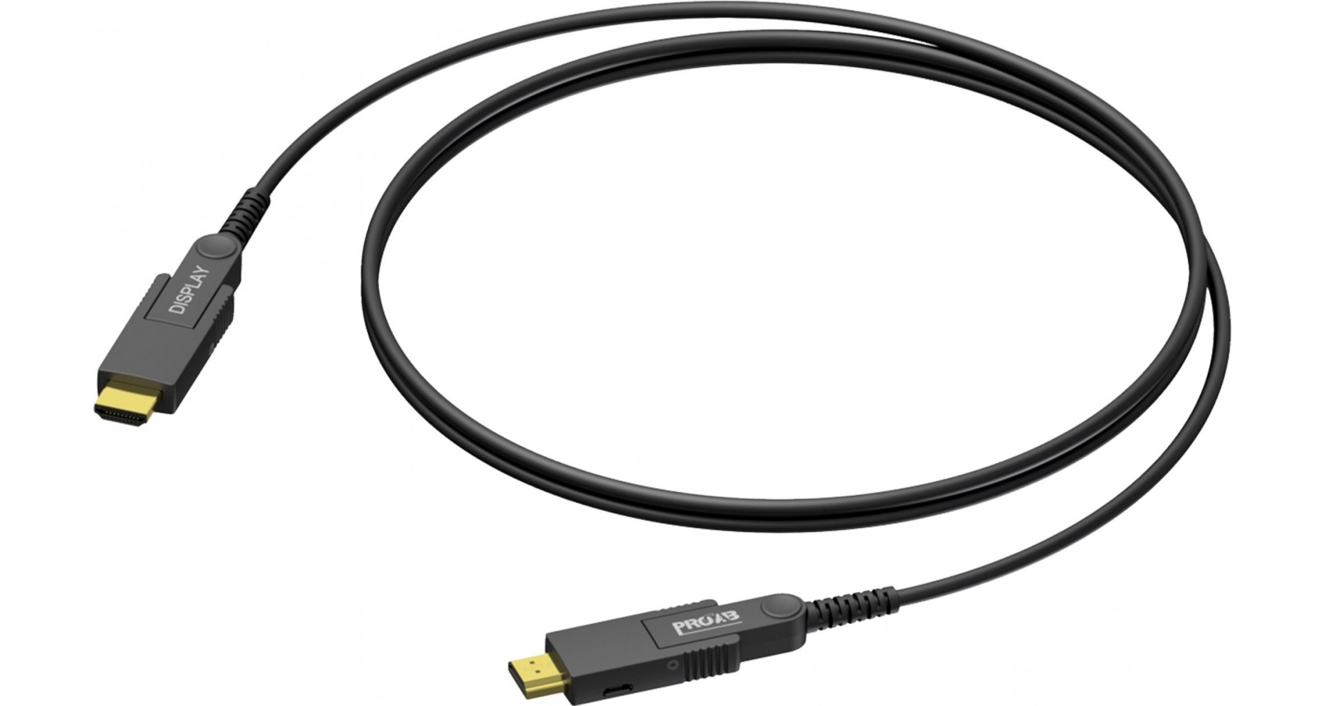 ProCab CLV220A 70m este un cablu HDMI optic ce poate transmite rezolutii de pana la Ultra HD 4K 2160p (4096 x 2160) 4:4:4 la 60 Hz pe distanta de 70 metri. Fiind un cablu optic activ, acesta nu este influentat de interferente electro-magnetice si este ideal pentru instalatii fixe de dimensiuni mari.