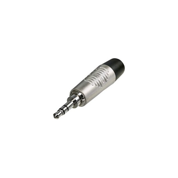 Conector jack stereo tata de 3.5 mm cu 3 pini, contacte placate cu nichel si carcasa din zinc placat cu nichel.