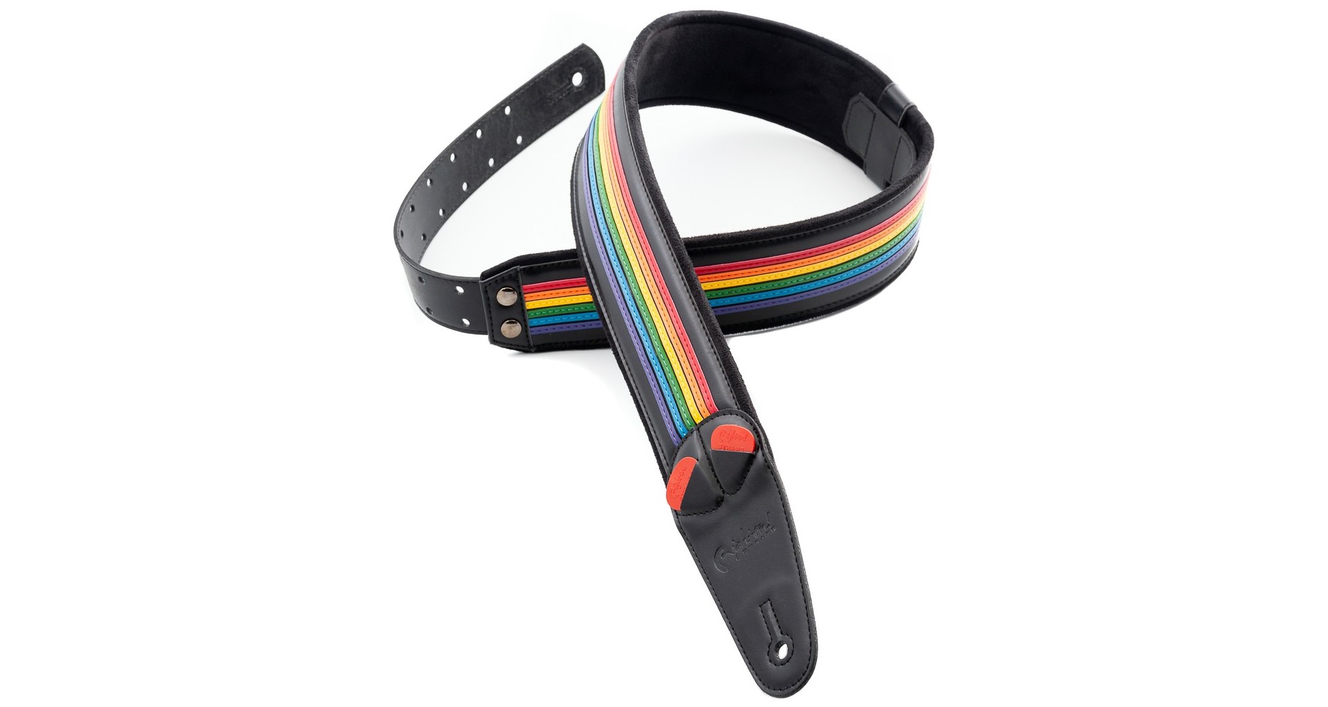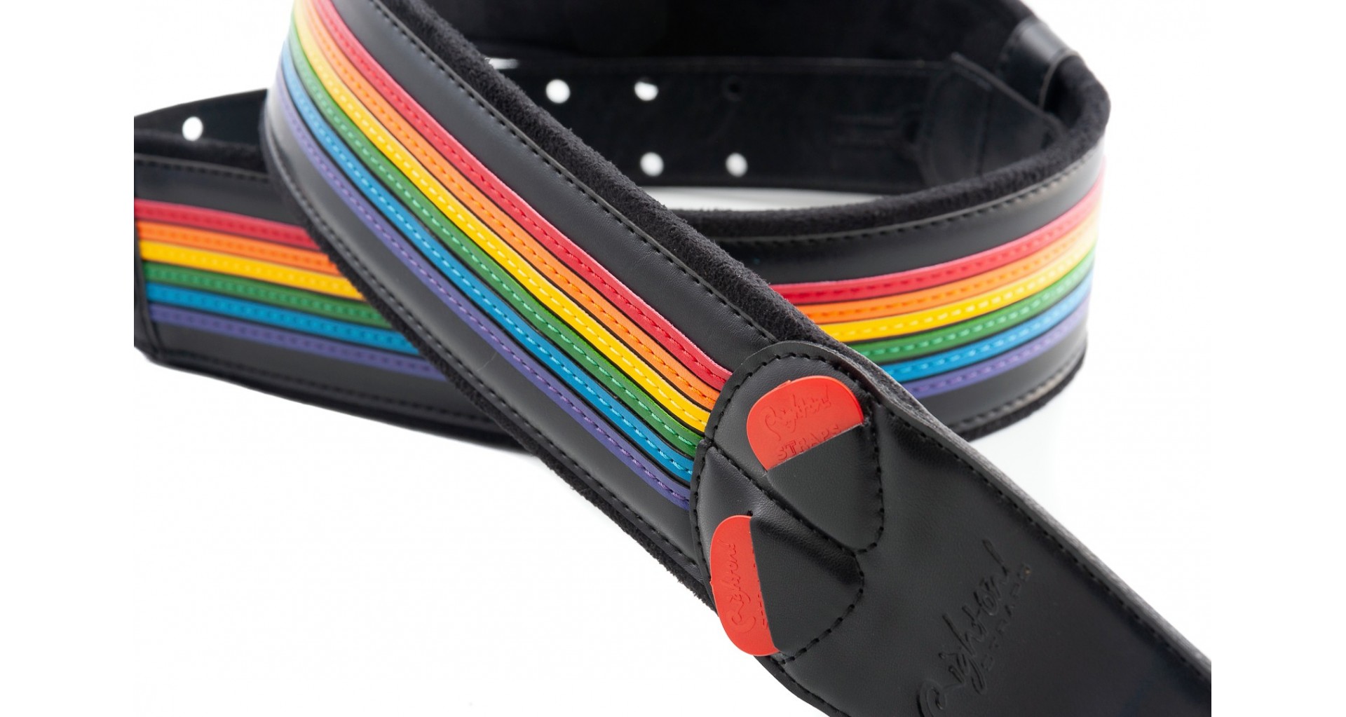 Curea de chitara din material textil multicolor, cu interior din latex cu grosime de 5 mm pentru confort sporit. Datorita sistemului unic, RAS, lungimea poate fi ajustata cu usurinta. Strapul este dotat cu buzunarase usor de accesat pentru stocarea penelor, fiind ideal pentru cantat live.