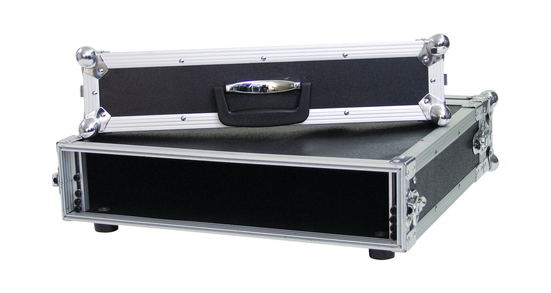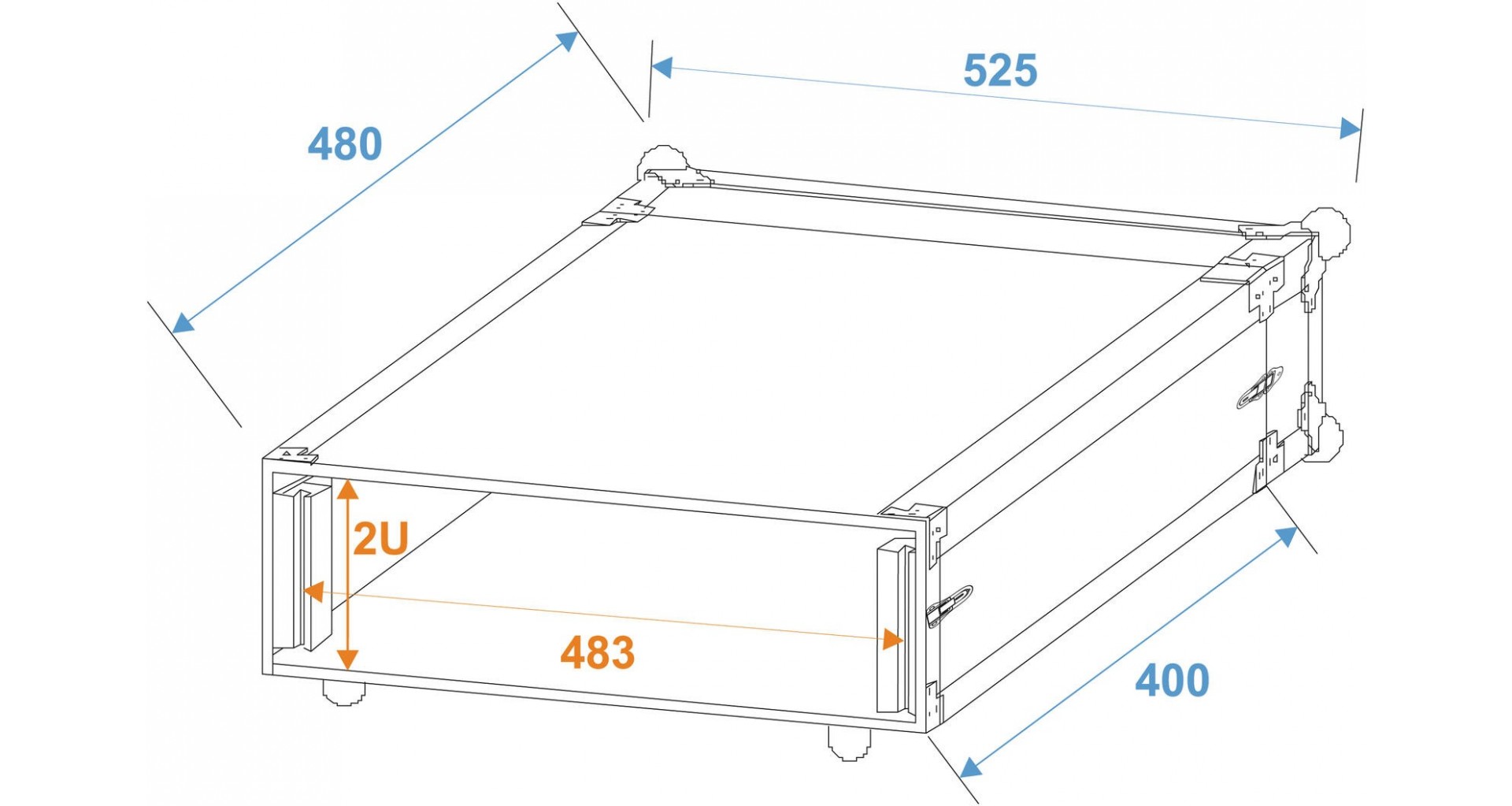 Flightcase rack 19 inch (2U) cu adancime de montare de 400 mm si sarcina maxima de 20 kg. Este construit din placaj multistrat de 7 mm si are un finisaj negru laminat, cu profile din aluminiu de 22 mm si colturi rotunjite. Este echipat cu sine de rack, include 4 incuietori tip arc cu functie de blocare, un maner rezistent si picioare din cauciuc. Design-ul prezinta doua capace detasabile (double-door) ce permit o utilizare usoara a echipamentelor. Dimensiuni: 52,5 × 55,5 × 15 cm; greutate 5,2 kg. Adancime utila 400 mm.