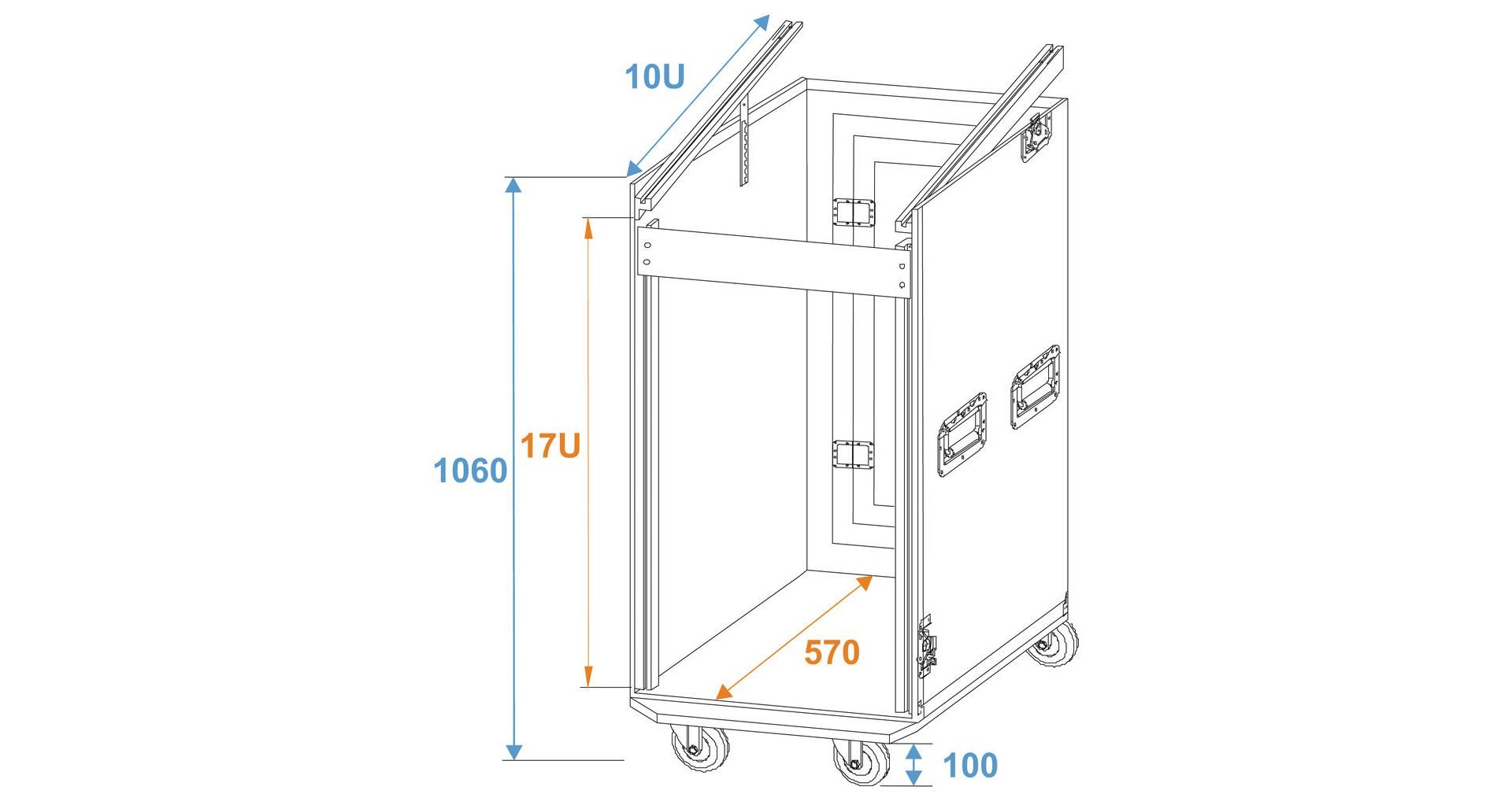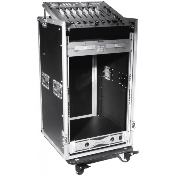Acest flightcase este solutia profesionala pentru un DJ setup complet echipat. Acomodand de la sistemul PA, 1 cd player dublu, un mixer de 19" si o unitate de efecte, flightcase-ul are in sectiunea TOP 10U. Sectiunea BOTTOM poate inmagazina pana la 12U.