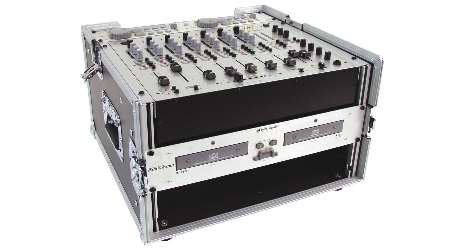 Acest flightcase este solutia profesionala pentru un DJ setup complet echipat. Acomodand de la sistemul PA, 1 cd player dublu, un mixer de 19" si o unitate de efecte, flightcase-ul are in sectiunea TOP 10U. Sectiunea FRONT poate inmagazina pana la 4U.
