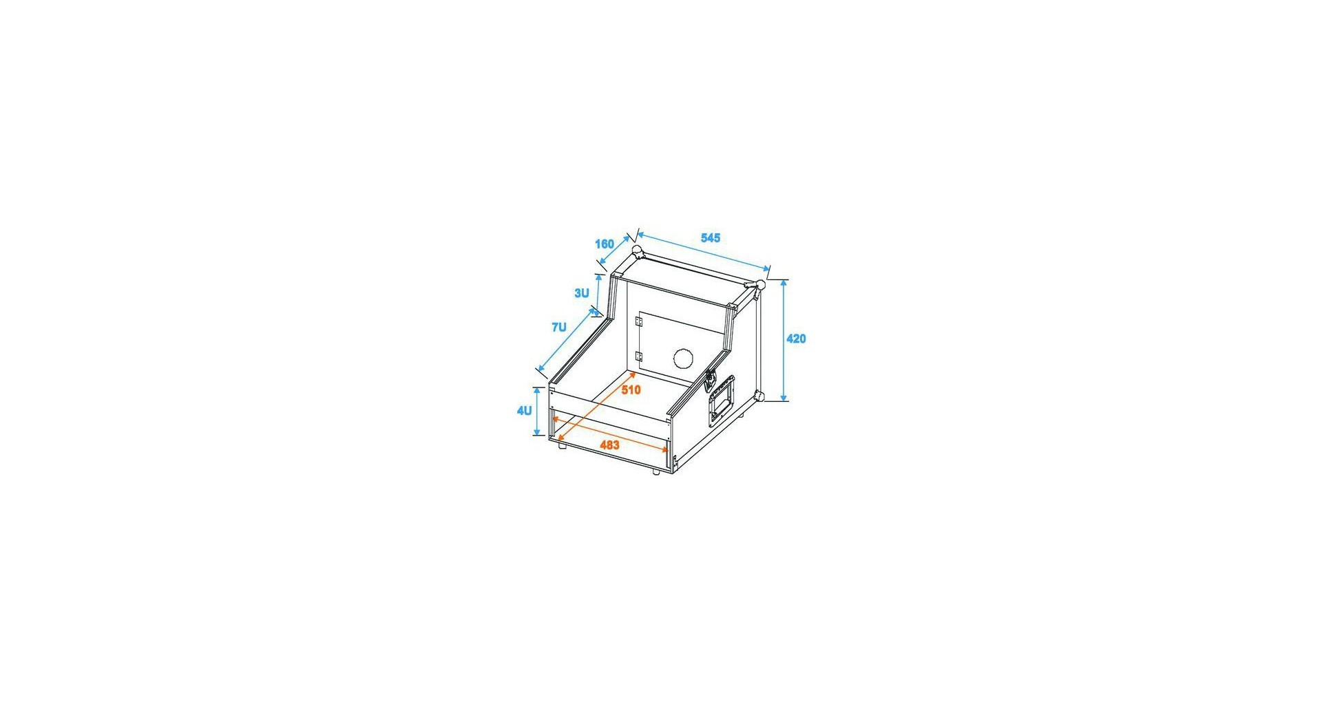 Acest flightcase este solutia profesionala pentru un DJ setup complet echipat. Acomodand de la sistemul PA, 1 cd player dublu, un mixer de 19" si o unitate de efecte, flightcase-ul are in sectiunea TOP 3U. Sectiunea FRONT poate inmagazina pana la 4U, iar in sectiunea SLANTED (inclinat) poate suporta pana la 7 U.